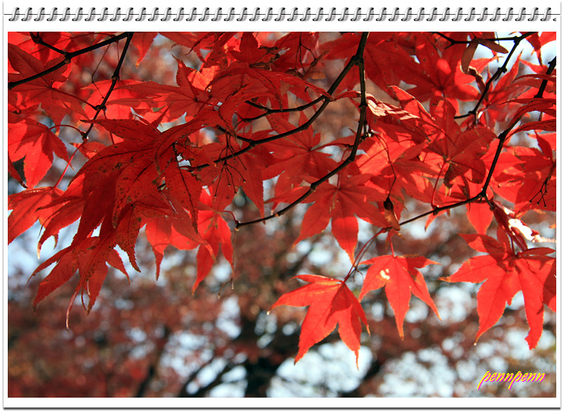 왼쪽 언덕은 그야말로 단풍이 절정입니다. 역광으로 바라보면 불타는 모습을 더욱 생생하게 바라볼 수 있습니다. 흔히 보통의 사물을 카메라 렌즈를 통해 바라보면 왜곡되어 보일 경우가 많습니다. 별로 시원치 않은 사물도 화려하게 보이는 경우가 있는 반면, 반대로 아름다운 광경도 실제보다 오히려 신통치 않는 경우도 더러 있습니다. 오늘 단풍 사진이 바로 후자(後者)의 경우입니다. 이럴 때에는 인간의 눈이 가장 정확한 잣대입니다. 글쓴이가 눈으로 본 것을 그대로 정확하게 전달할 수 없는 내공의 부족이 부끄럽습니다.
