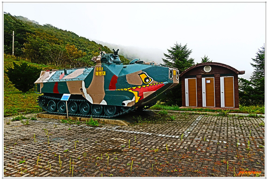 조금 더 가면 우측에 무적 해변의 도솔산 전적지 입구 표석이 있는데 위령비는 우측 언덕 200m 거리에 있지만 출입을 통제해 답사를 하지 못했습니다. 그런데 2년 전에는 현역 군인들이 보초를 서면서 방문객들이 도솔산지구 전투위령비를 볼 수 있도록 안내했는데 현재는 출입이 불가능합니다. 참고로 2년 전 답사했던 사진을 게재합니다.