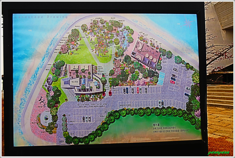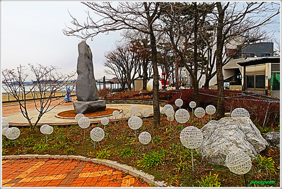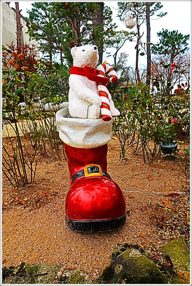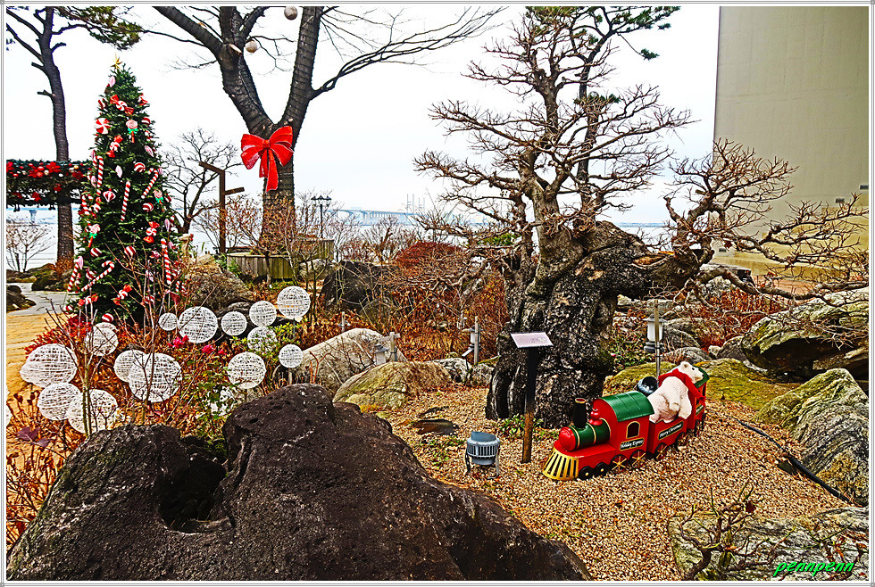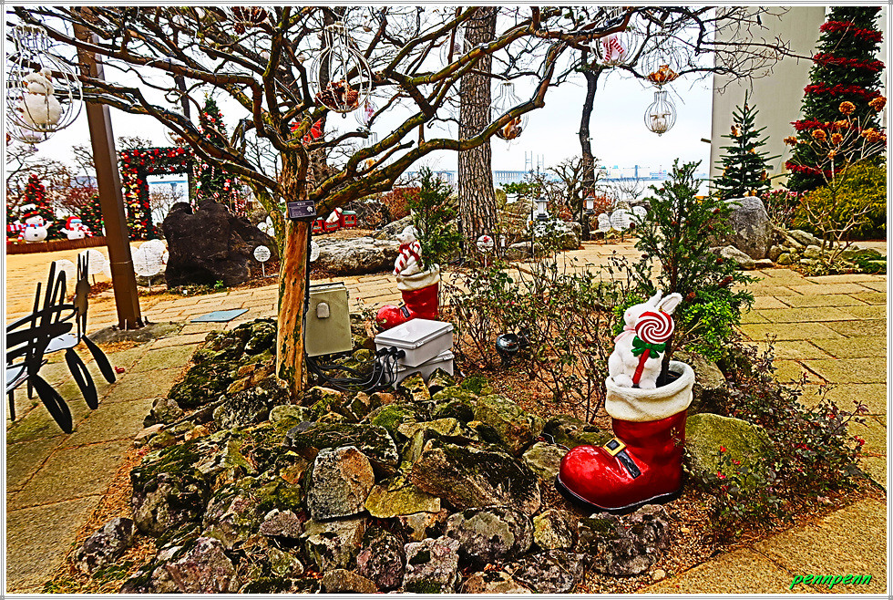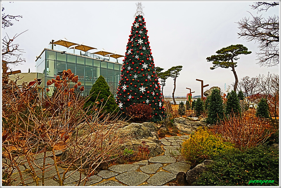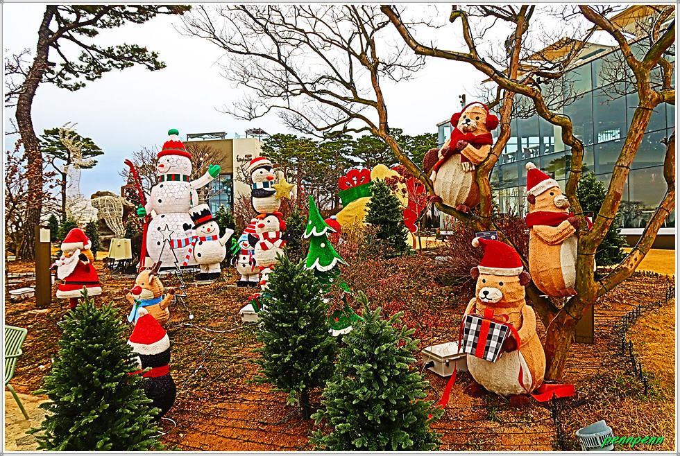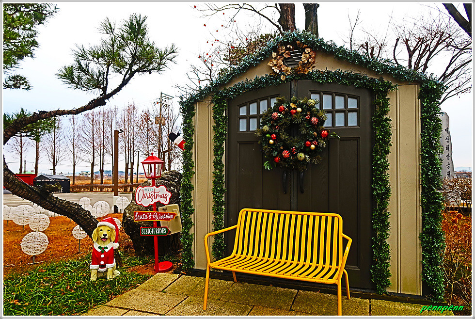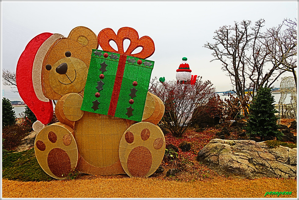 이곳 공원에는 해어름 레스토랑과 베이커리가 있는데 70여종의 수목과 350여종의 초화류가 있어 사계(四季)의 아름다운 변화와 여유로움을 선물하는 공간입니다. 특히 크리스마스를 앞두고 이를 주제로 한 다양한 조형물이 조성되어 연말의 분위기를 물씬 풍깁니다. 필자는 서해랑길 83코스를 답사하면서 이곳을 경유하게 되었습니다. 여기서는 다른 각도에서 서해대교를 바라볼 수 있습니다.