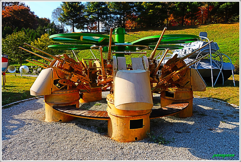 “대공포 파고라”는 하늘을 지키던 대공포는 이제 땅속에 뿌리를 내리고 새로운 생명을 탄생시키는 생명의 나무로 거듭납니다. 인간에게 편안하고 안전한 그늘을 제공하고 사람들의 여유로운 미소가 세상에 널리 전파되기를 바라는 파고라입니다. “철조망”(무기여 잘 있거라)은 위 종언과 마찬가지로 전쟁의 시대가 가고 평화의 시대가 왔기에 시대가 바뀌고 국제관계의 패러다임이 바뀌었음을 직접적인 메시지로 전달하는 조형물입니다.