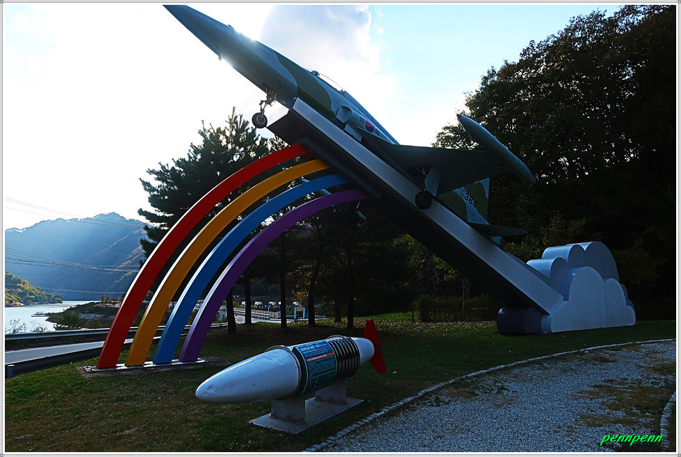 강원도 화천군 화천읍 동촌리 소재 평화의 댐 하부에 있는 국제평화아트파크는 전쟁의 상징인 폐무기를 활용하여 평화 예술품으로 재구성해 조성한 공원으로 2015년 한국전쟁 휴전일에 맞춰 개장하였습니다. 평화의 댐 바로 밑에 있는 아트파크는 수명을 다해 폐기 처분된 탱크, 자주포, 대공포, 전투기 등을 활용하여 만들었으며 공원에는 군 장비 15점, 일반 조형물 7점, 산책코스가 마련되어 있어 통일과 안보교육에 최적화 되어 있는 곳입니다.
