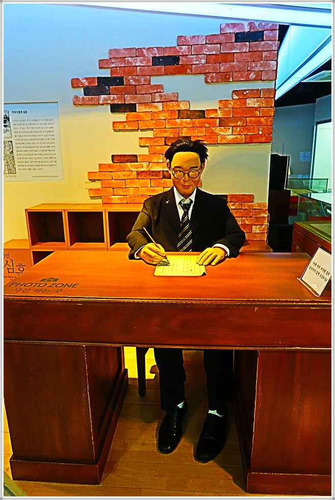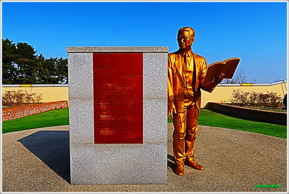 필경사 경내에는 상록수의 주인공(박동혁, 채영신)을 조형물로 제작해 전시하고 있는데 필경사는 보수공사 중이어서 가옥 내부를 볼 수 없음이 유감이었습니다. 이웃한 심훈기념관은 일제강점기 소설가 겸 시인 및 영화인이었던 심훈 선생의 항일 및 계몽정신을 후세에 선양하고자 건립한 기념관입니다. 기념관은 민족의식의 태동, 저항의 불꽃, 희망의 빛, 그날이 오면, 상록수 및 계몽운동의 씨앗으로 구성되어 있으며, 기념관 옥상에는 대표작인 “그날이 오면”의 시비와 선생의 동상이 세워져 있습니다.