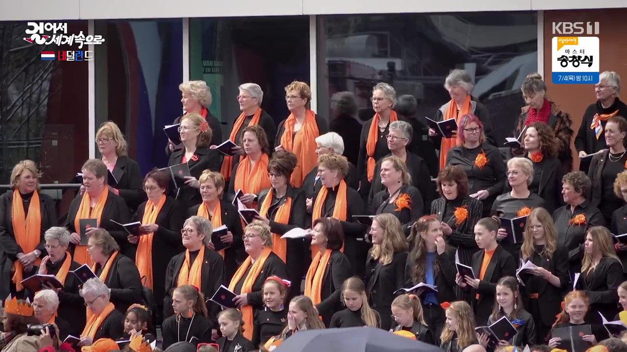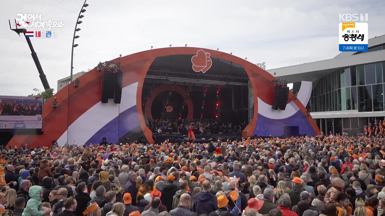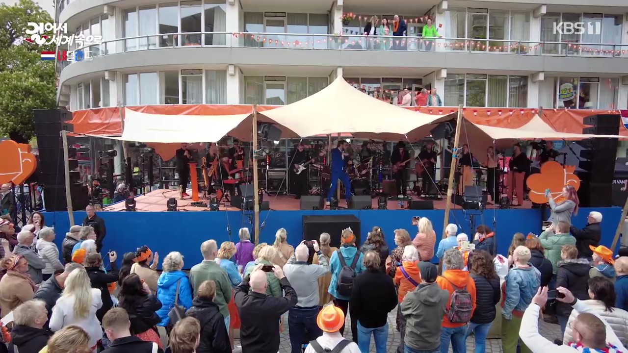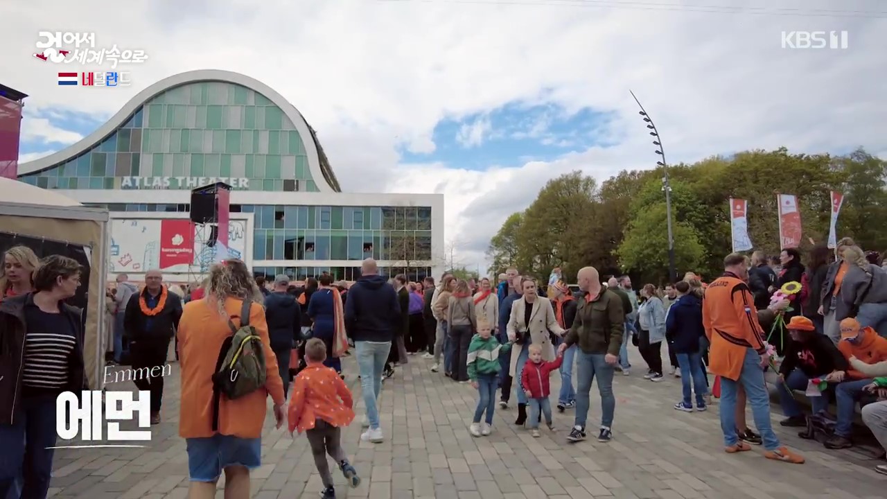 에먼은 인구 10만 정도의 작은 도시이지만 매년 4월 국왕탄신 축제가 열리는 곳입니다. 국왕과 왕비 그리고 공주까지 직접 참석해 사람들과 소통하면서 축제를 즐깁니다. 취재진은 국왕에게 한국에서 왔다고 인사를 하자 국왕은 한국 대통령도 네덜란드를 방문했었다고 화답합니다. 군중들 앞에서 연설을 하는 국왕의 모습이 참으로 멋집니다.