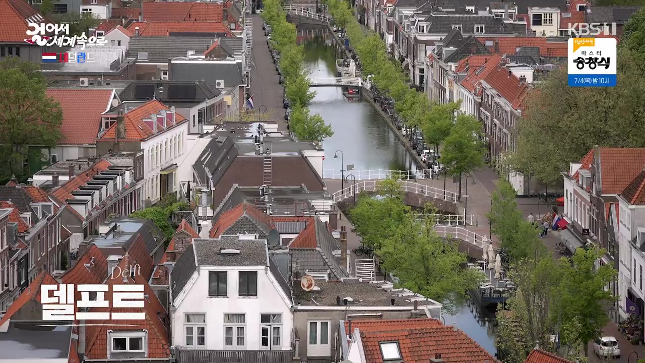 델프트는 화가 페르메이르의 고향으로 델프트 도자기로 유명해 연간 100만 명의 관광객이 찾아옵니다. 이 도시는 2차 세계대전 당시 폭격을 피해 구 시가지가 잘 보존되어 있습니다. 중고시장에서 거래되는 청색의 도자기가 바로 델프트 도자기입니다. 이 도자기는 아시아에서 수입된 도자기를 모티브로 기술발전을 거쳐 왕실도자기가 되었습니다. 도자기 타일을 붙여 걸작을 재현한 작품도 있습니다.