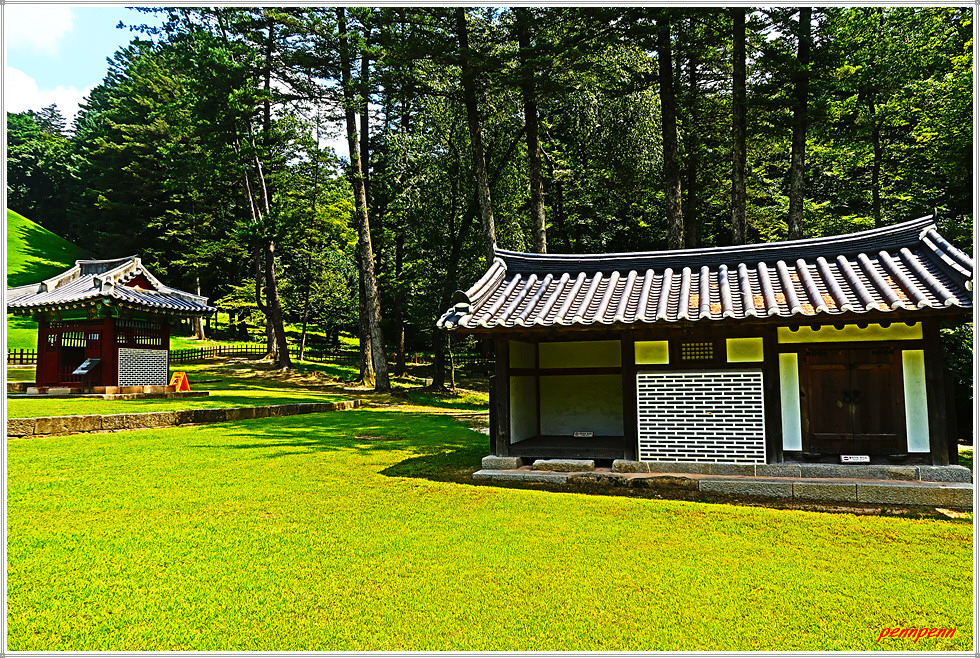 정자각 좌측에는 수라간이 있고 그 위쪽에는 세조의 능이 있습니다. 정자각 우측에는 수복방과 비각이 있고 그 위쪽에는 정희왕후의 능이 있습니다. 능침보호를 위해 능침구간의 출입이 금지되어 멀리서 바라보기만 할 뿐입니다.