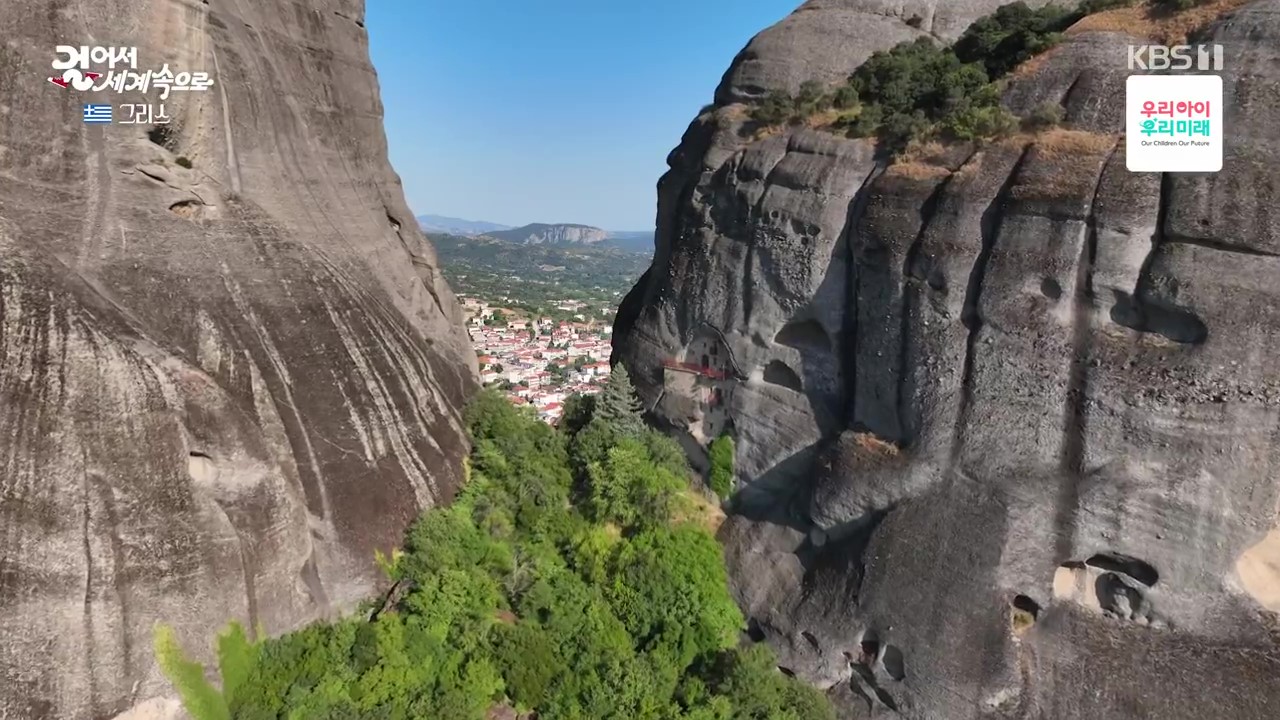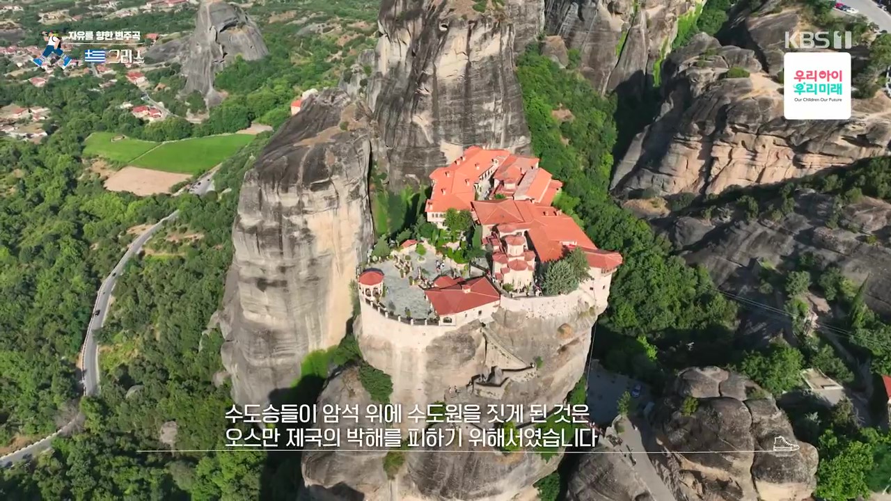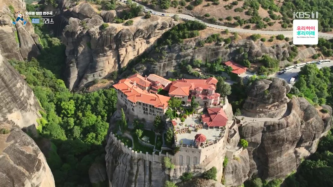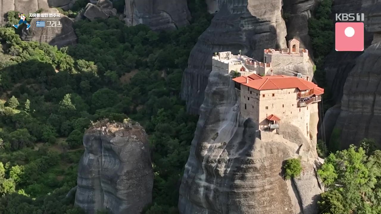 메테오라는 깎아지른 듯한 기암괴석과 붉은 지붕들의 조화가 감탄을 자아내는 곳입니다. 특히 기암괴석 위의 수도원은 경이롭기까지 합니다. 메테오라는 “공중에 떠 있다”는 뜻으로 절벽 꼭대기의 수도원을 말합니다. 이런 곳에 수도원을 지은 것은 그리스가 400년 이상 오스만의 지배를 받을 동안 오스만 제국의 박해를 피하기 위해 15세기 경 지어졌습니다.