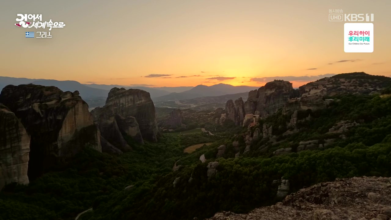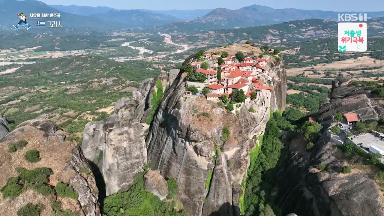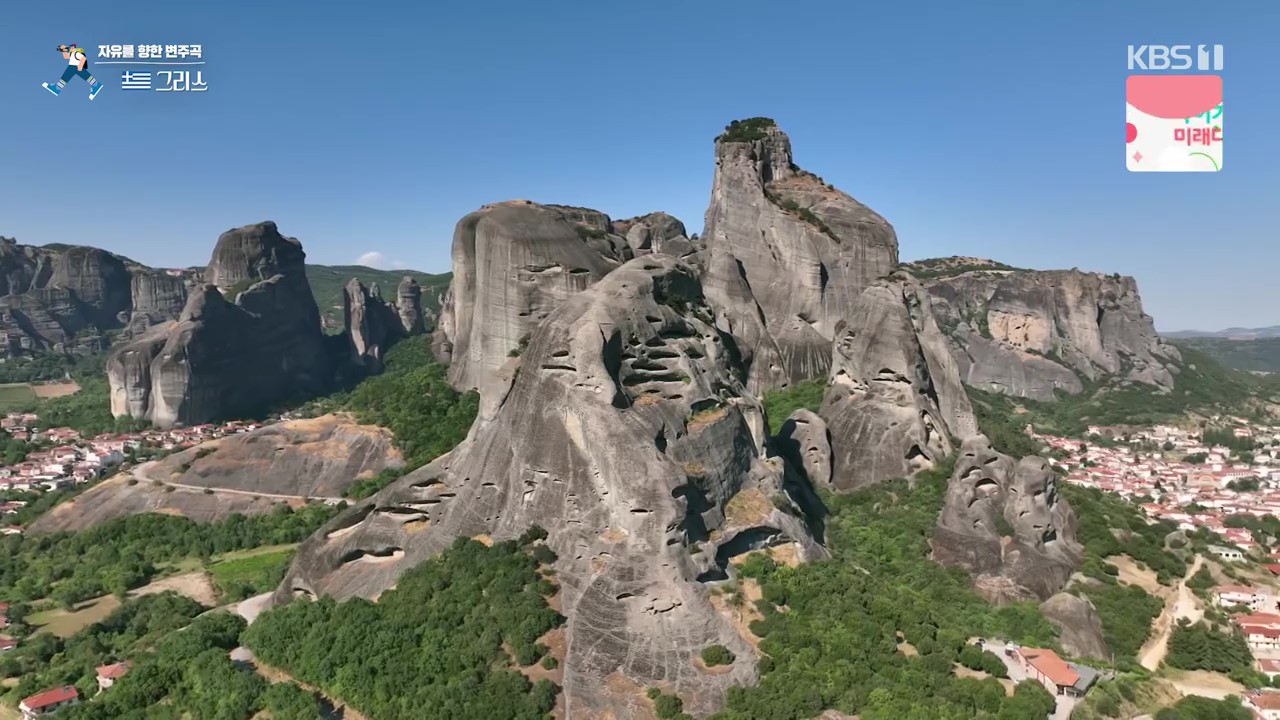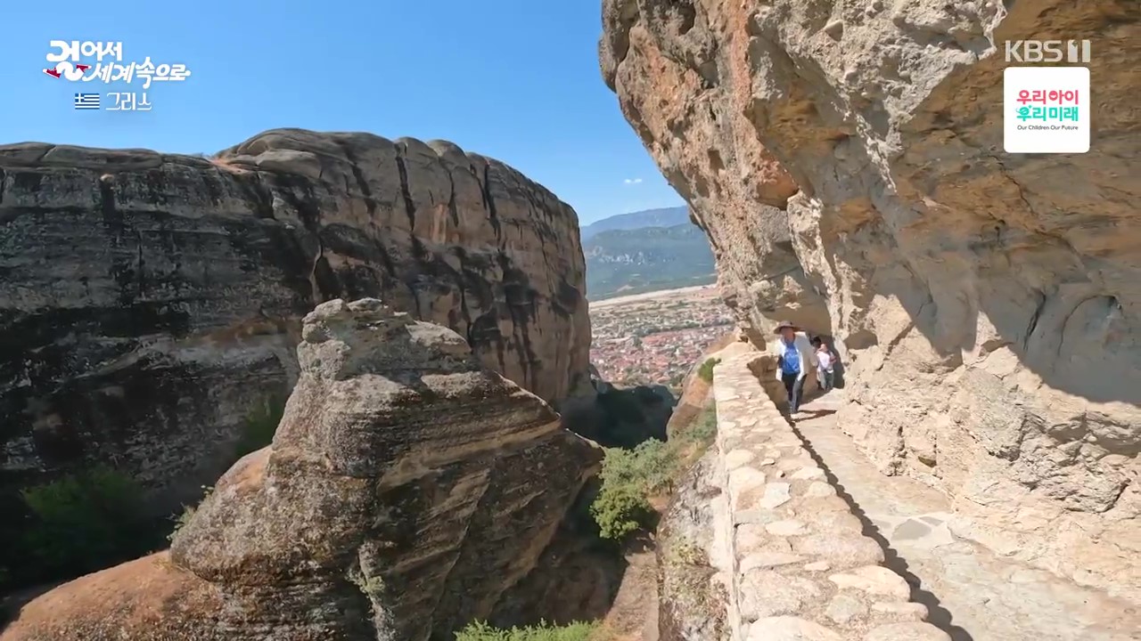 메테오라는 깎아지른 듯한 기암괴석과 붉은 지붕들의 조화가 감탄을 자아내는 곳입니다. 특히 기암괴석 위의 수도원은 경이롭기까지 합니다. 메테오라는 “공중에 떠 있다”는 뜻으로 절벽 꼭대기의 수도원을 말합니다. 이런 곳에 수도원을 지은 것은 그리스가 400년 이상 오스만의 지배를 받을 동안 오스만 제국의 박해를 피하기 위해 15세기 경 지어졌습니다.