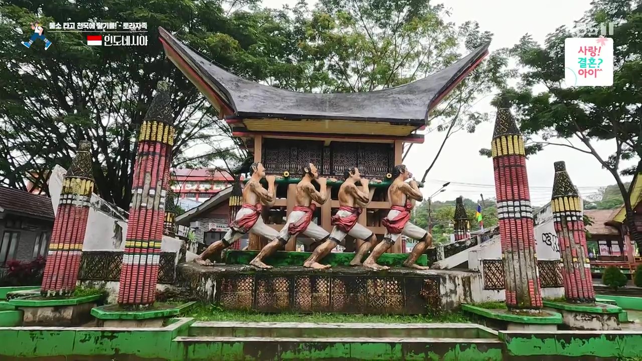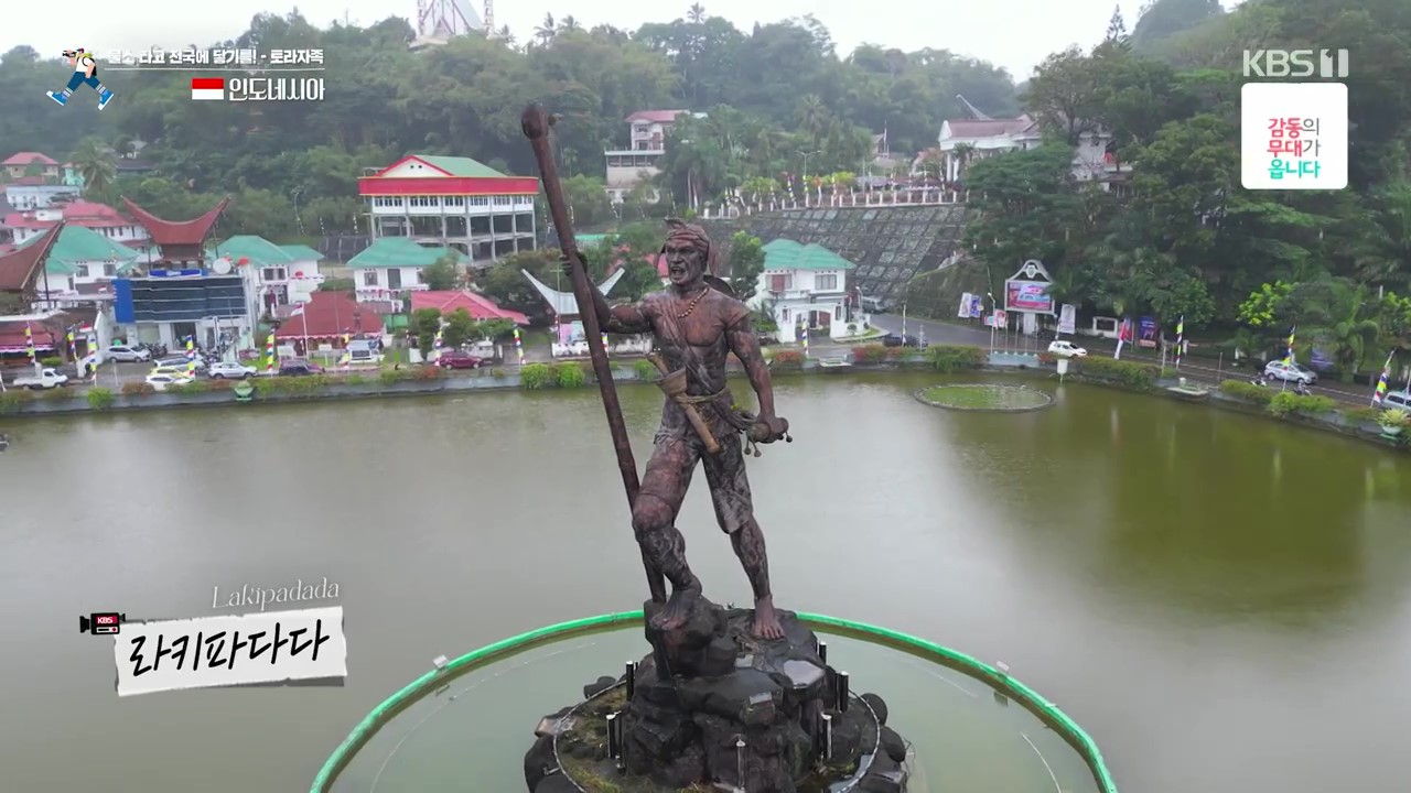 이제 북부 술라웨시에서 남부 술라웨시로 갑니다. 타나 토라자는 술라웨시 중남부 산악지대로 토라자족이 살고 있습니다. 마칼레는 타나 토라자 자치구의 중심도시로 라키파다다는 토라자 족의 전설적인 영웅이며, 장례문화를 상징하는 조형물이 있는데 바로 상여를 옮기는 모습입니다.