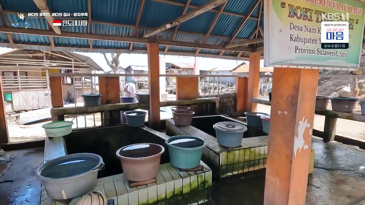바자우족은 바다의 유목민이라고 불리는 소수민족입니다. 마나도 항구에서 배를 타고 약 2시간을 달리면 부나켄 해양국립공원의 나인브사르섬에 도착합니다. 마을에는 바자우족 약 1천여 명이 거주중인데 주민들 일부는 해안가 수상가옥에 살고 있습니다. 수도시설이 없는 섬이라서 주민들은 공동우물을 이용합니다. 주민들은 차례를 기다려 물을 퍼올립니다. 마을에는 이슬람사원과 기독교 교회가 있으며, 종교에 따라 두 마을로 나누어져 있지요. 그렇지만 두 마을은 사이가 좋아 남녀가 서로 혼인을 하기도 한답니다. 마을사람들의 수입원은 말린 생선을 판매한 것입니다.