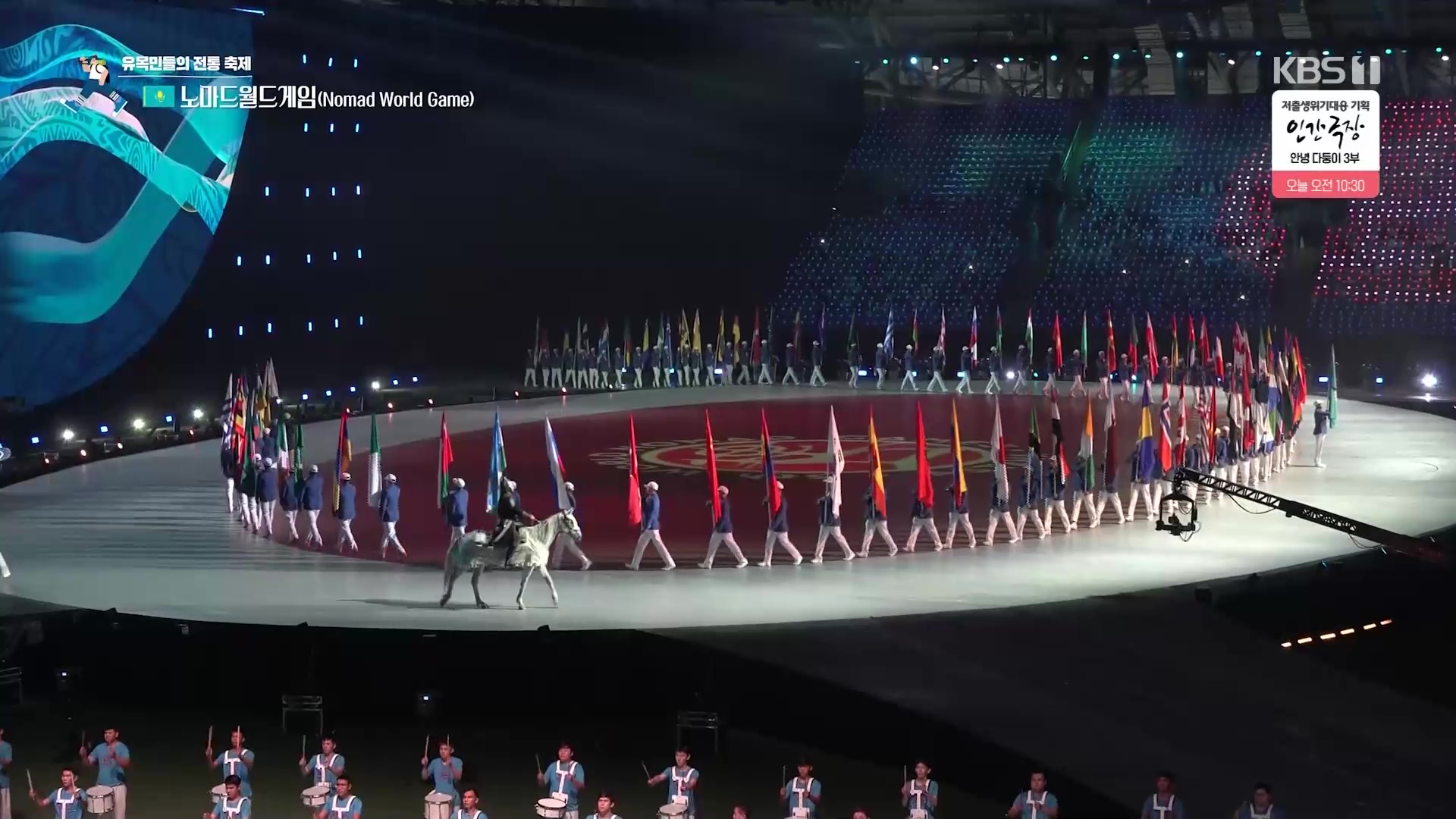 노마드월드게임은 5년 전 창설된 국제 유목민 대회로 유목민의 전통과 문화를 전 세계에 알리는 축제이며, 카자흐스탄에서는 처음 열리는 대회의 개막식을 참관합니다. 전 세계 80여 개 국 3,000여 명의 선수단이 참가해 21개 종목에서 겨룬답니다. 한국이 참가한 것은 이외입니다.