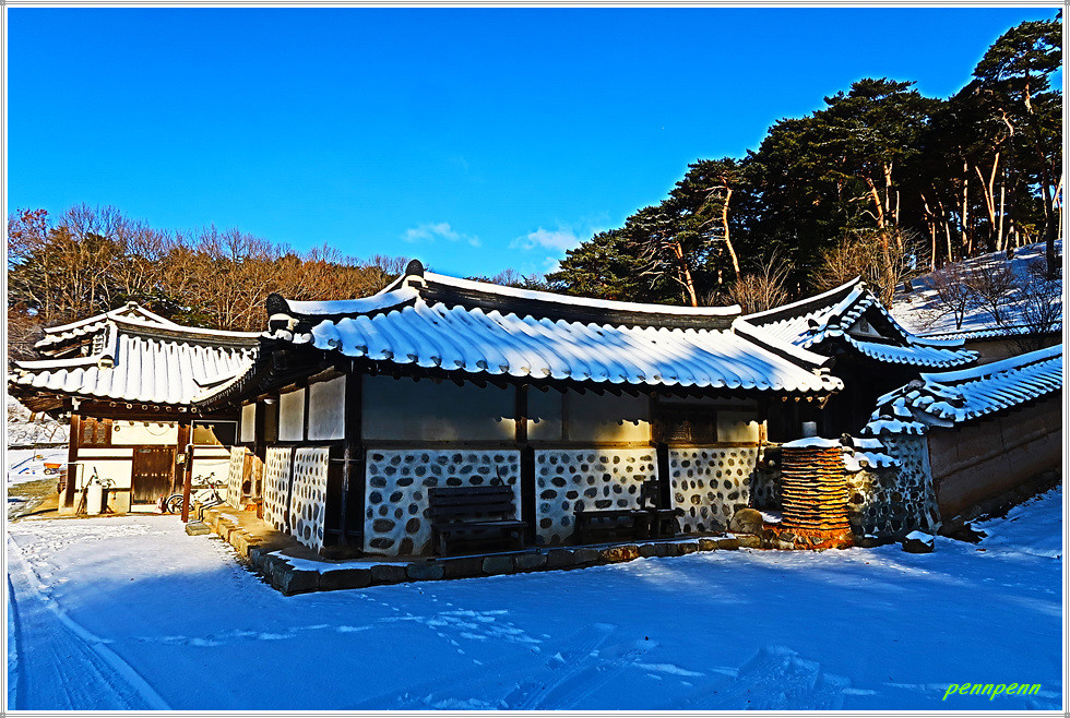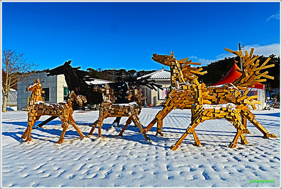 이곳 여미리에는 유기방 가옥을 비롯해 여미리 비자나무(천연기념물), 조선 제2대왕인 정종의 4남 선성군(宣城君)을 기리는 사당인 선정묘(宣靖廟), 멋진 말 조형물이 있는 달빛미술관, 고려시대에 만들어진 것으로 추정되는 여미리 석불입상, 일제치하에서 서울 운현궁을 본떠 지은 건축물이라는 유상묵 가옥이 있어 이를 두루 살펴보고는 등산버스를 이용해 당진시 관내 대운산교로 갑니다.