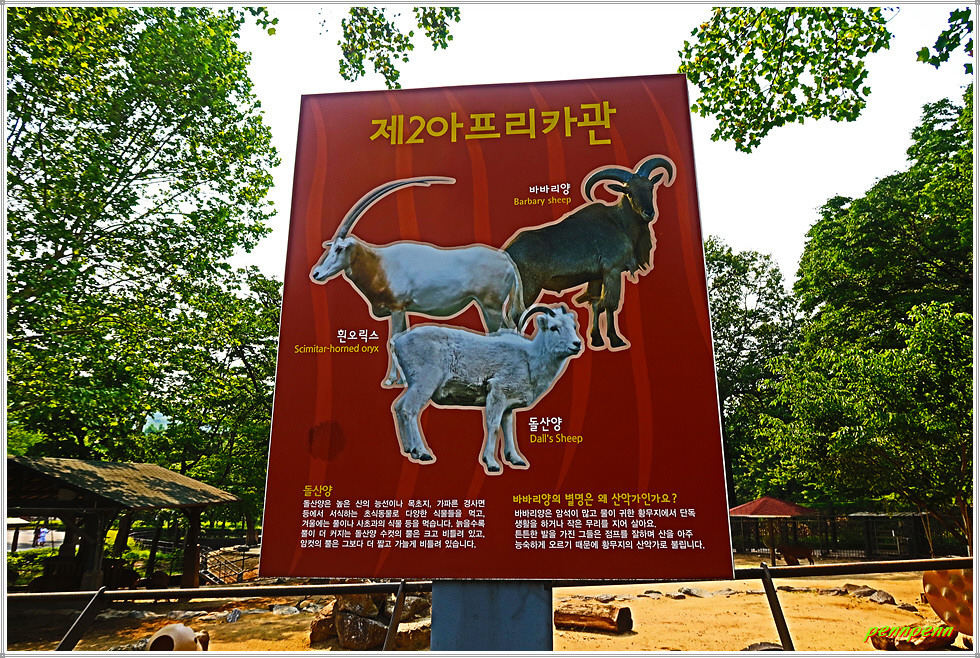 <제2아프리카관>에는 바바리양, 흰오릭스, 하마가 사육중입니다. 바바리양의 바바리는 북아프리카에 거주하던 베르베르인에서 따온 이름으로 아프리카에 서식하는 유일한 양입니다. 바바리양은 경사가 급한 산악지형에서 점프를 하며 산을 오르기에 황무지의 산악가로 불린답니다.