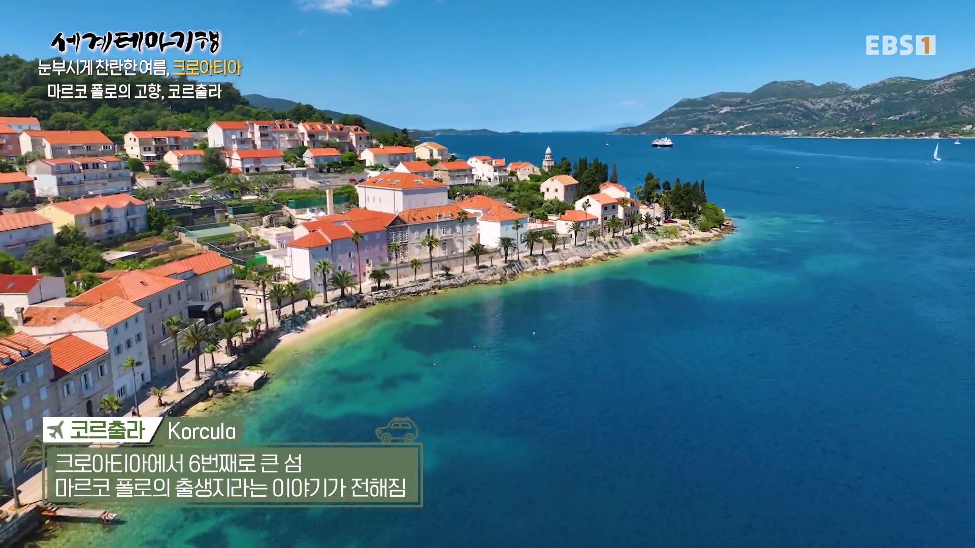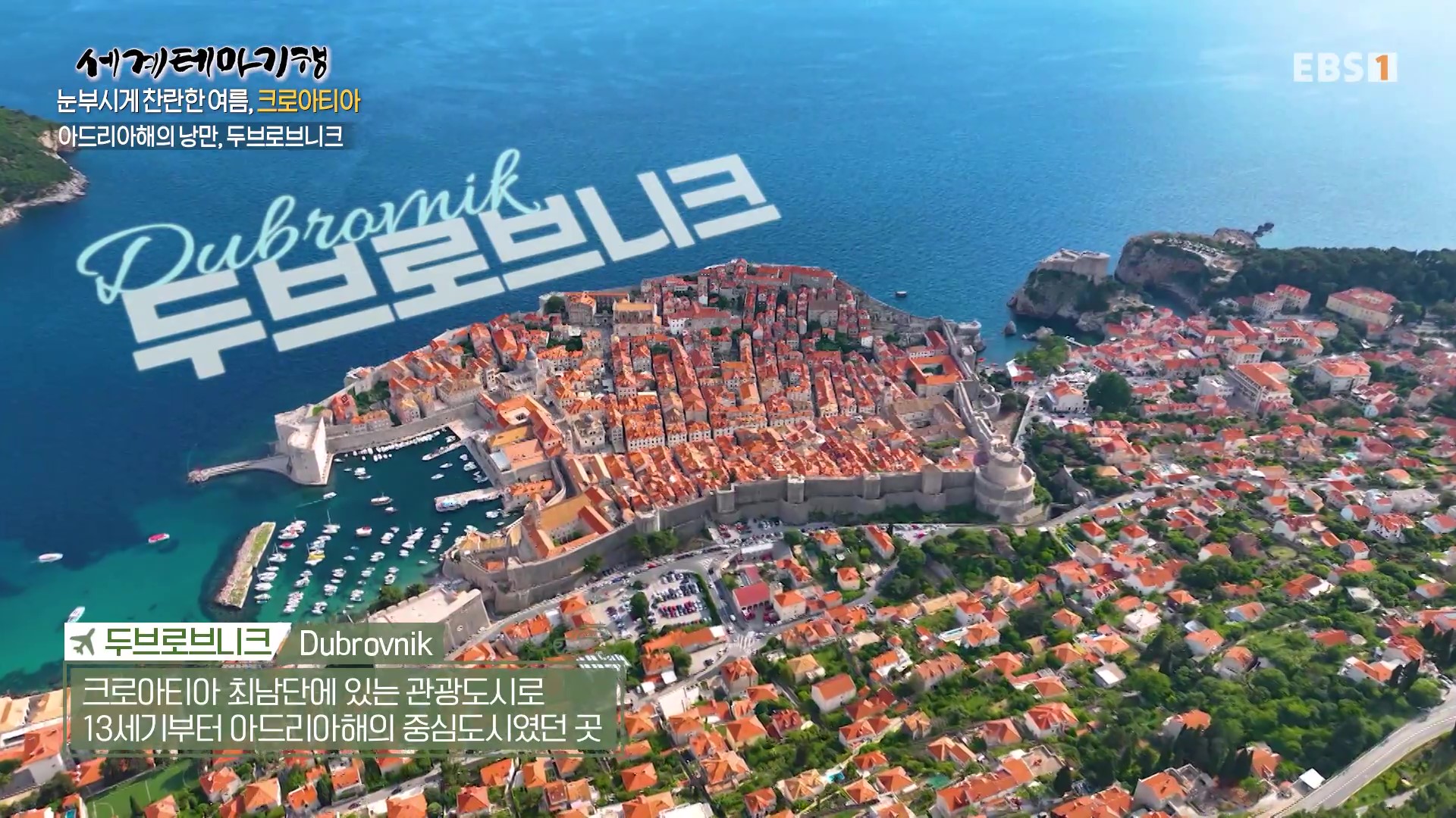 <EBS 세계테마기행>은 안방에 편안하게 앉아서 세계의 명소들을 체험할 수 있는 수준 높은 교양프로그램입니다. 각 방면에 걸쳐 다양한 지식을 가진 전문가가 출연해 실시하는 해설을 따라가노라면 실제로 해외여행을 하는 것 같은 착각에 빠지기도 합니다. 2025년 7월 중순(2025. 7. 14∼7. 17)에는 “세계테마기행, 눈부시게 찬란한 여름-크로아티아”편이 방영되었습니다. 크로아티아의 국토면적은 한반도의 약 0.4배, 인구는 384만 명, 수도는 자그레브입니다. 이번 여행의 가이드는 크로아티아 여행 전문가 박도형(크로아티아 정착 12년차)입니다.