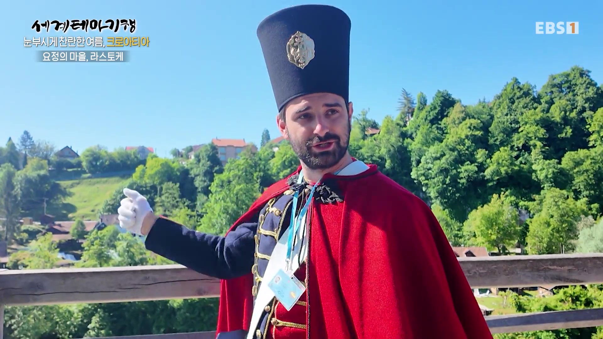 라스토케 마을은 플리트비체 인근마을로 두 개의 강이 만나는 지역에 있어 풍광이 매우 아름답습니다. 크로아티아 병사의 전통제복을 입은 안내원이 관광객을 맞이합니다. 곡예사가 줄타기도 하는군요. 이곳은 원래 물레방의 마을이라서 지금도 운영하는 물레방아가 있습니다.