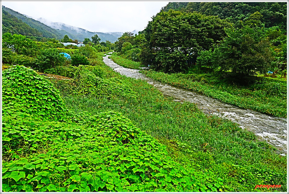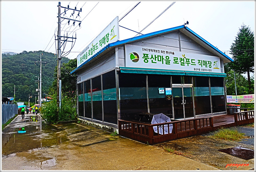 대전차방호벽을 지난 후 호음교 옆을 통과합니다. 길섶의 대추나무에는 대추가 주렁주렁 달려 있군요. 고개를 숙인 벼는 곧 수확을 해도 될 것 같습니다. 비닐하우스에는 인삼을 재배하고 있습니다. 길을 가다가 좌측으로 좀 벗어나니 풍산마을 로컬푸드 직매장과 풍산교차로입니다. 목적지인 풍산교까지는 3m를 더 가야하지만 체력이 고갈되어 멈춥니다. 남은 거리는 차량으로 이동합니다. 오늘 약13km를 걷는데 3시간 정도 걸렸습니다. 이 코스는 강원도평화누리자전거길을 걸으며 이미 답사했기에 오늘은 복습한 셈입니다.