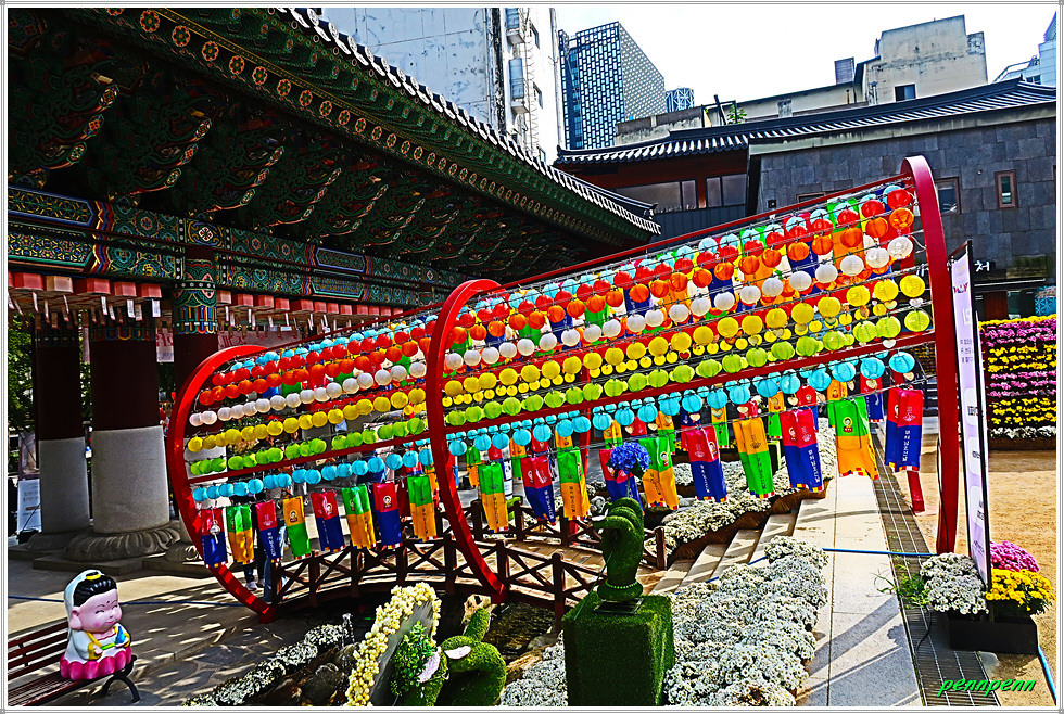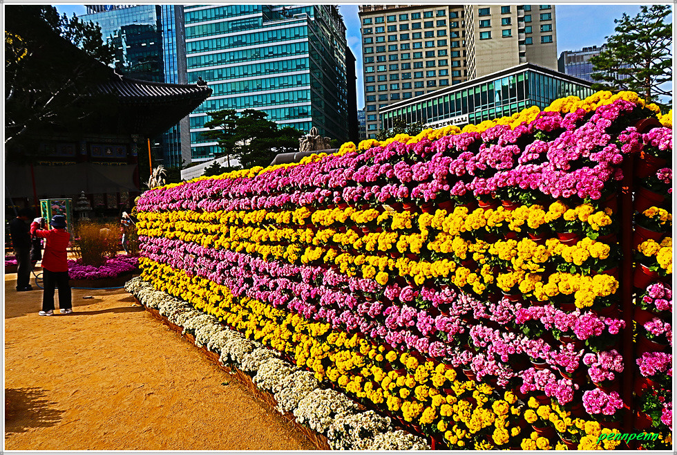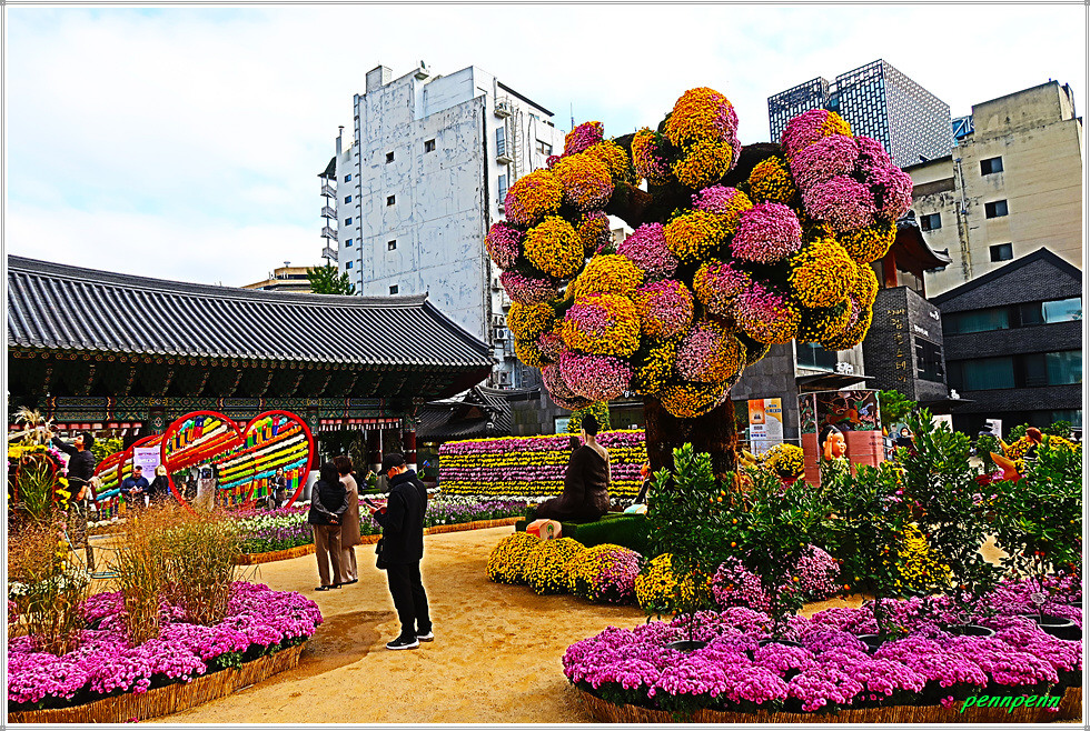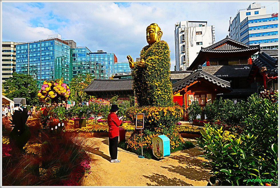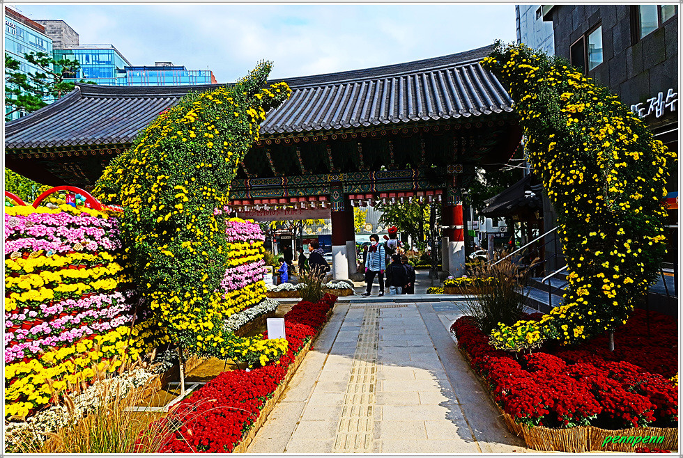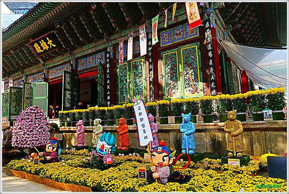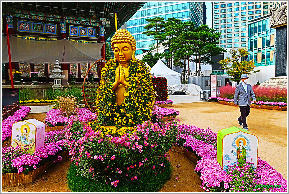 조계사에서는 현재 제15회 국화화엄축제(2025. 10. 15∼10. 31)가 열리고 있습니다. 화엄(華嚴)은 여러 가지 수행을 하고 만덕을 쌓아 덕과를 장엄하게 하는 일을 뜻하는 불교용어인데 이를 국화축제에 사용하였군요. 그간 몇 차례 조계사에서 시행한 가을꽃춪제를 참관했는데 금년은 다양한 조형물을 만들어 화려하게 꽃밭을 조성해 놓아 여느 해보다 볼거리와 즐길 거리가 풍부한 모습입니다. 화려하고 멋진 국화축제의 모습을 사진으로 소개합니다. (2025. 10. 20).