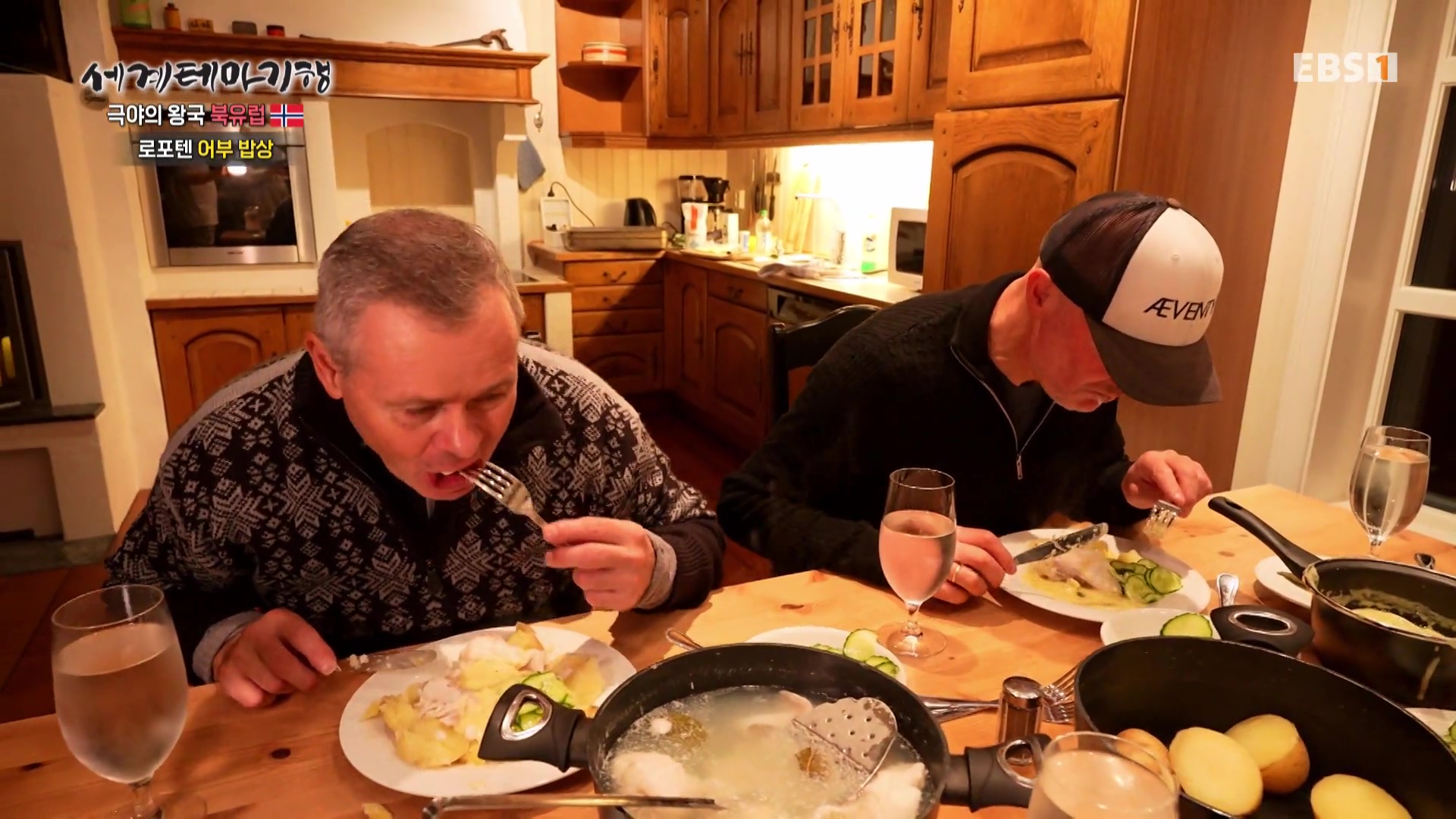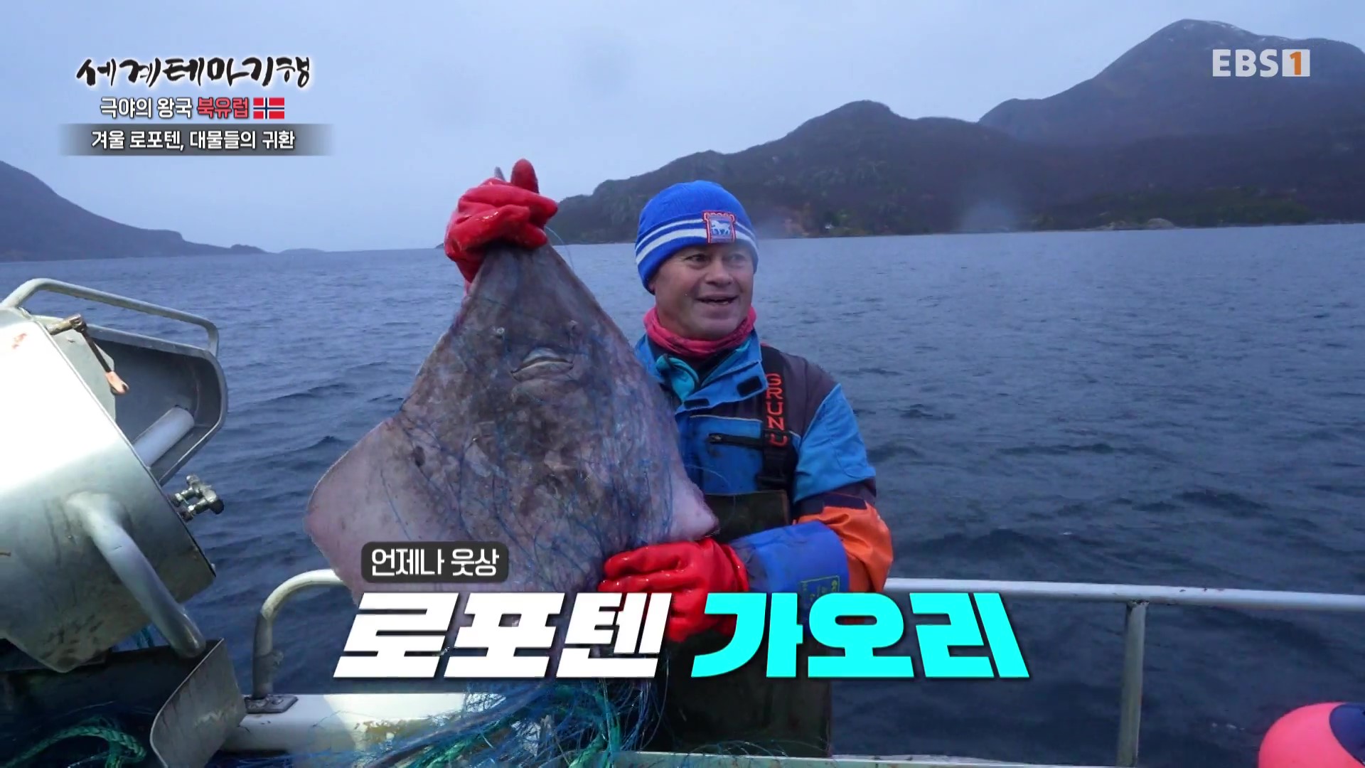 새벽 6시 대물(큰 물고기인 대왕 넙치)을 잡기위해 미리 처 둔 그물(4-5일 전)을 건지러 나가는 어부를 따라나섭니다. 대왕넙치와 대구, 아귀와 가오리를 잡아올립니다. 막판에 잡은 50kg의 넙치에 함박웃음을 짓군요. 이곳 사람들은 생선을 회로 먹지 않고 삶아서 소스를 곁들여 먹습니다. 이곳 화려한 별장은 이곳 지주가 5대에 걸쳐 살고 있는 곳이며, 현재는 위탁을 받아 관리 중으로 숙소로 운영하고 있습니다. 노르웨이 왕비도 방문했답니다. 관리인이 요리해 준 와플을 먹으며 이 분위기에 심취합니다.