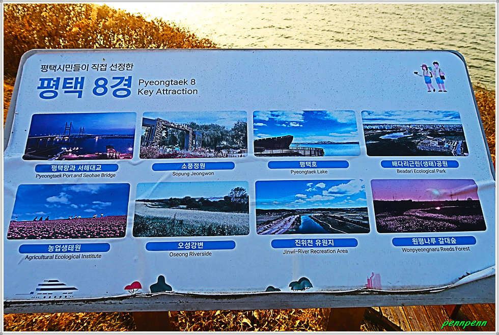 평택호반에는 평택강이라는 글씨가 써진 조형물이 보입니다. 사실 평택강이라는 용어는 지도상에는 없어 현지 안내문을 살펴보았습니다. 평택호(아산호)의 물길을 구성하는 이곳은 안성천이 서해로 흘러드는 곳이지만 진위천이 안성천으로 합류해 아산만 방조제까지 흐르는 약 20km 강물을 평택강이라고 부르기로 했다는군요. 사실 아산호도 평택지역에서는 평택호로 부르고 있기에 이를 탓할 수는 없을 것입니다.