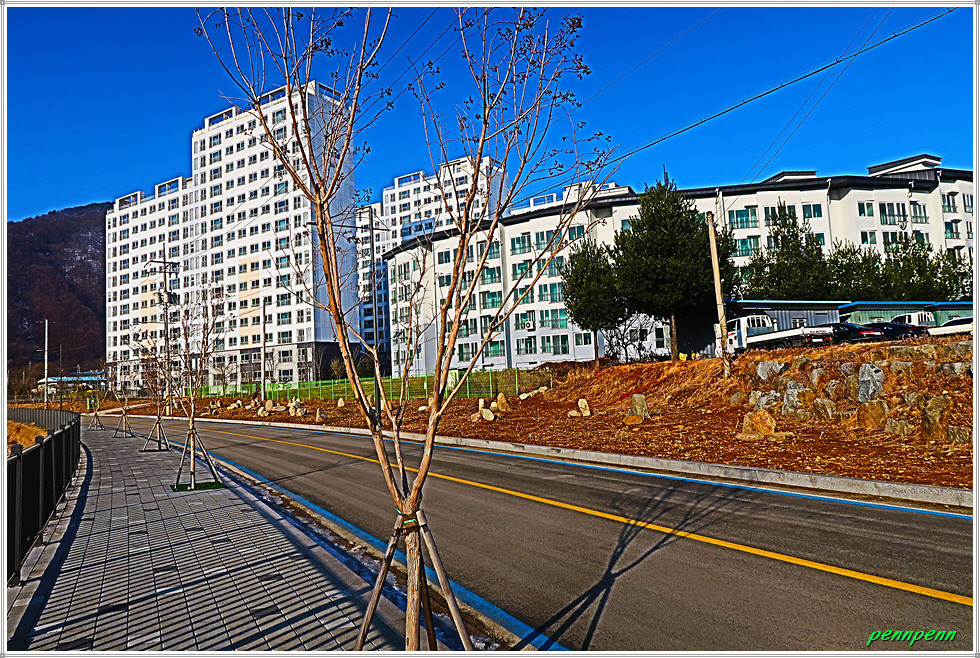 인북천이 S자를 그리며 휘돌아가는 곳에 인북천물빛테마공원이 있어 서화생활체육공원에서 테마공원으로 갑니다. 공원으로 접근하는 방법은 남쪽에서 강변길을 따라 북상할 수도 있지만 보행자는 백색의 서화미소아파트 남단에 있는 인북천을 가로지르는 멋진 보행전용교량을 통해 접근이 가능합니다.