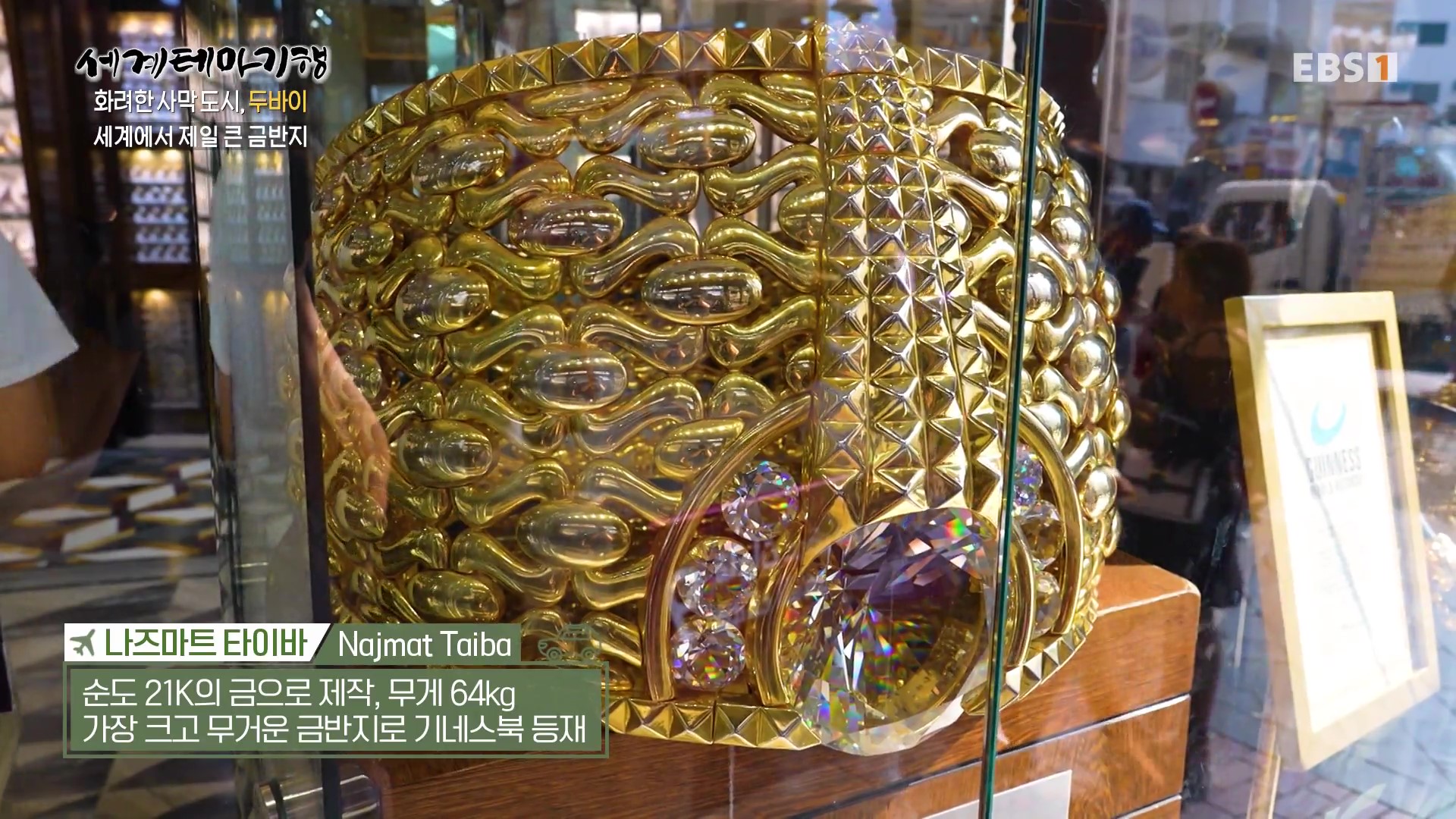 데이라 시장의 금시장은 600개 이상 금 상점이 밀집한 중동 최대의 시장입니다. 이슬람에서는 남성의 금착용을 금지해 금은 여성만이 가질 수 있다고 하는군요. 나즈바트 타이마 반지는 무게 64kg으로 세상에서 가장 크고 무거운 금반지로 기네스북에 등재되었습니다. 판매용은 아니지만 시가는 약 107억원이랍니다. 45명의 금세공자가 45일 동안 만든 것입니다. 두바이 식탁의 필수품인 향신료 시장도 대단하지요.