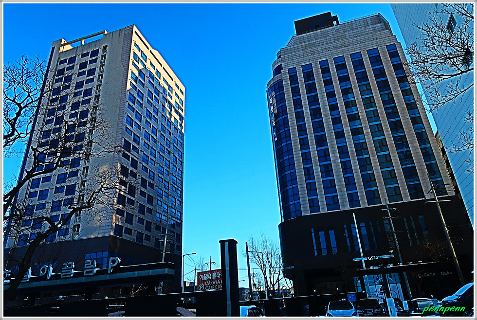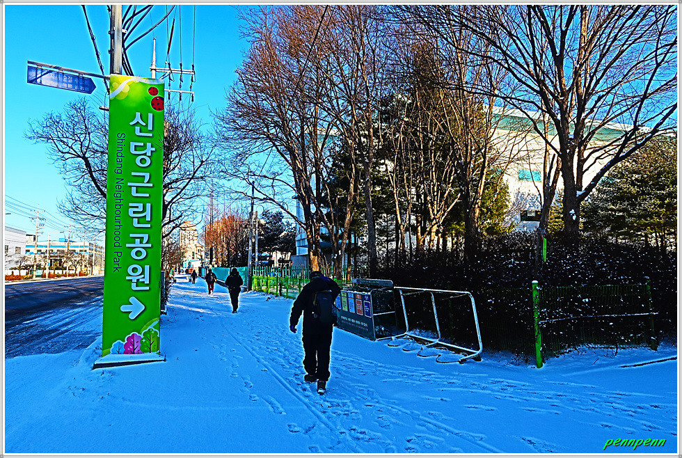 홍보관을 나와 신당근린공원 숲길을 빠져 나가면 대로인 평택항로인데 이 길을 따라 북쪽으로 갑니다. 도로변에 공장건물이 많이 보이는 것은 이곳이 평택포승제2일반산업단지와 아산국가산업단지가 있기 때문입니다. 평택경찰서 만호파출소를 뒤로하고 나란히 서 있는 두 동(棟)의 호텔을 지나갑니다. 이촌교를 건너 모아미래도 아파트 단지와 평택도곡초등학교 및 도곡근린공원을 지나 도로변의 계단을 오릅니다.