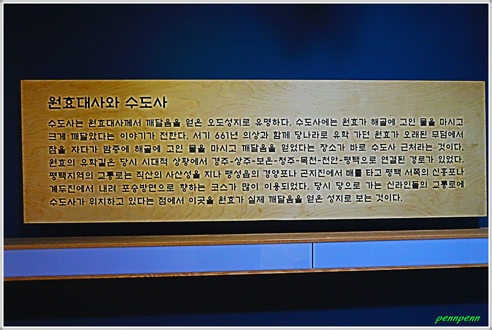 평택시 포승읍 원정리 소재 수도사는 대한불교 조계종 제2교구 본사인 용주사의 말사로서 음식을 통해 부처님 가르침을 전했던 원효대사가 깨달음을 이룬 도량으로, 의상대사와 함께 당나라로 유학 가던 중 이곳에서 해골에 담긴 물을 마시고 “마음밖에 법이 없는데 어찌 따로 구할 것이 있겠느냐”란 대오를 이루어 일상생활 속에서 중생들에게 직접 부처님의 가르침을 전한 도량입니다. 수도사는 신라 문성왕 14년(852) 염거스님이 창건하였다고 전합니다. 그러나 이곳이 661년(문무왕 1년) 원효대사가 해골물을 마시고 득도한 곳이므로 염거스님이 창건하기 전에도 작은 암자가 있었을 것으로 추정됩니다. 이곳에는 원효대사 깨달음체험실이 있지요.