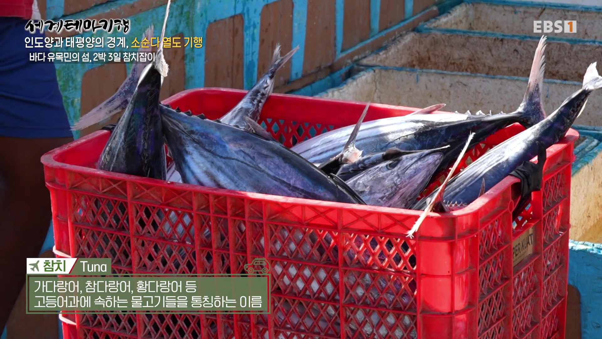 새벽 해뜰녁 노련한 선장이 참치의 길목에 배를 멈추자 선원들은 낚시준비로 분주합니다. 선원들이 뱃머리에 낚싯대를 내리고 있으면 다른 선원은 미끼로 가져온 작은 고기를 바다에 뿌립니다. 그러면 흥분한 참치들은 미끼 없는 낚시 바늘을 미끼로 착각해 덥석 물게 되고 이때 낚아채면 배의 갑판 위에 떨어집니다. 즉석에서 먹는 참치회 맛은 정말 일품이네요.