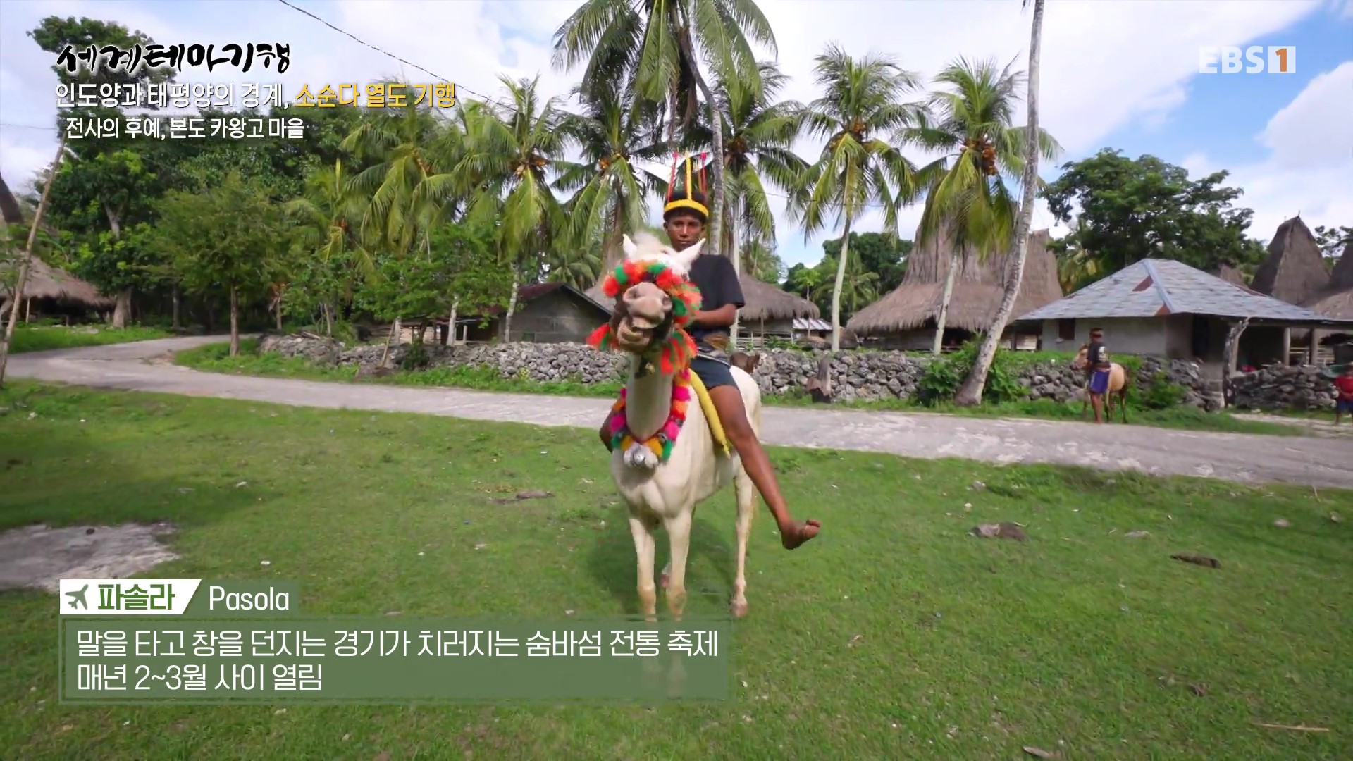 본도카왕고마을은 고유의 전통문화를 계승하는 마을입니다. 이곳에는 말을 타고 창을 던지는 경기가 치러지는 “파솔라”라 부르는 전통축제가 매년 2-3월에 열립니다. 이 경기는 일종의 전통스포츠입니다. 출전하는 말들은 화려한 치장을 하여 조상신에게 전사가 왔음을 알립니다. 경기에 대비해 연습하는 모습만 봐도 참 용맹스럽습니다. 마을 주민 한 분이 택시영업을 위해 중고차 한 대를 구입했는데 이를 기념해 마을축제가 열립니다. 행사의 마지막은 차량시승식이네요. 자동차는 해변으로 갔는데 아이들은 물놀이에 빠져듭니다.