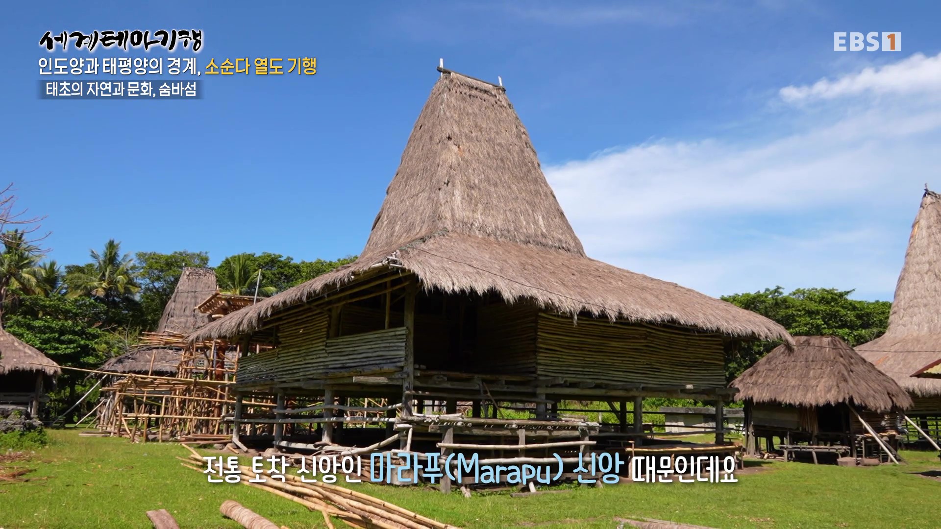 숨바섬은 소순다열도 중남부에 위치한 섬으로 제주도의 6배에 달하는 큰 섬입니다. 와잉아푸는 공항과 항구가 있는 이 섬의 최대도시입니다. 라라 프라일리우 마을은 특이한 지붕을 가진 마을입니다. 이 가옥은 4층 구조로 되어 있는데 1층은 가축, 2층은 주민, 3층은 조상, 4층은 신이 사는 공간입니다.