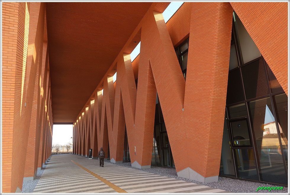 1층으로 내려선 후 출입문을 나서 우측 끝으로 가면 원통형의 시설물이 있는 데 바로 전망대입니다. 이곳은 추모의 위령비라고도 부릅니다. 기념관의 회랑 앞쪽에 자리 잡은 추모의 위령비는 원형의 통로가 수직적으로 반복되는 구조로서 희생자들을 추모하는 위령비 겸 쿠니사격장과 농섬, 매향리 인근을 조망하는 전망대로서의 기능을 합니다. 엘리베이터를 이용해 RF(ROOF FLOOR)층으로 오르면 사방팔방으로 펼쳐지는 매향리 평화생태공원과 남양만의 멋진 조망을 볼 수 있습니다.