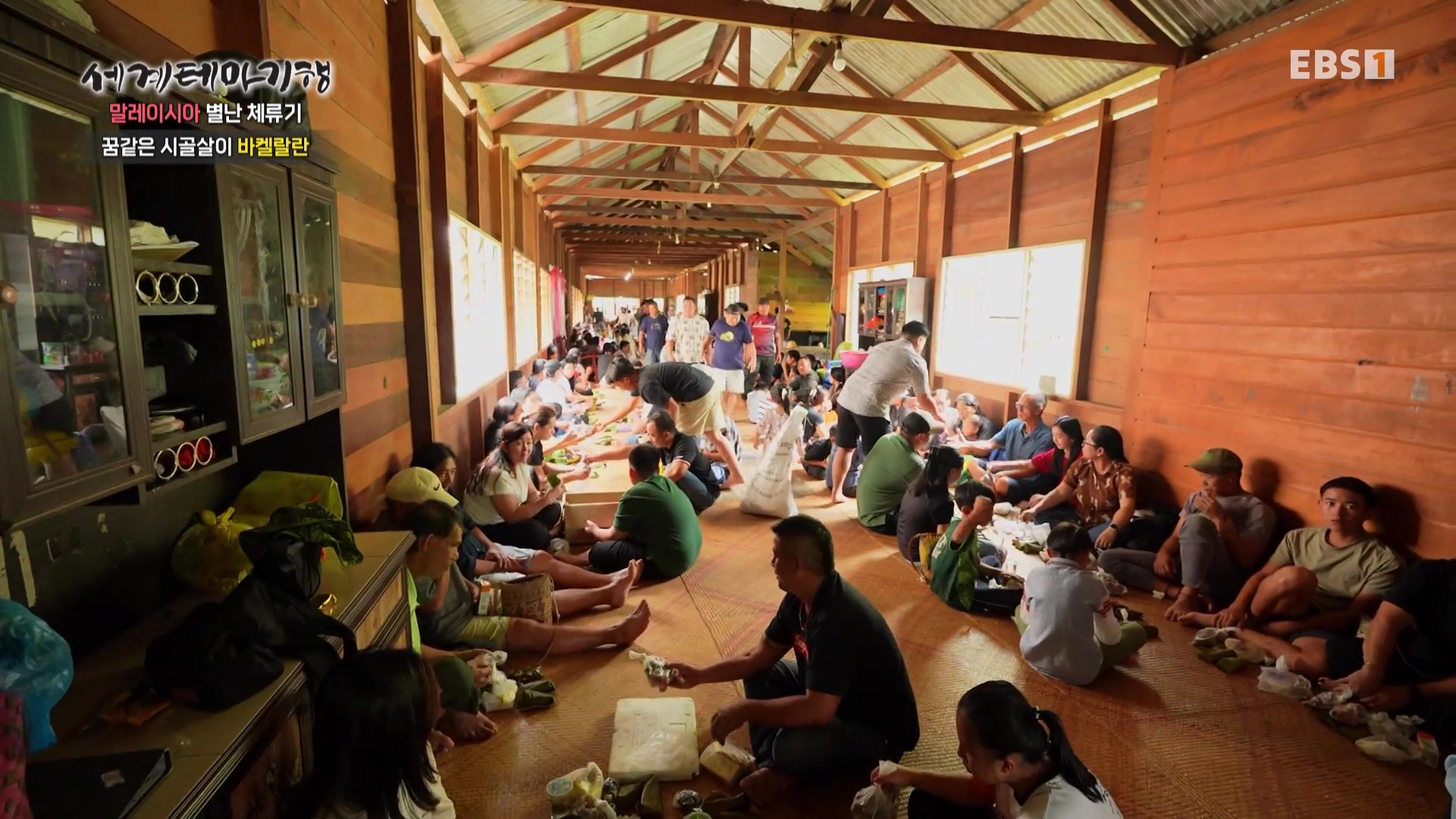 주민들은 결혼식에 참석할 하객들을 위해 물소 1마리, 돼지 여러 마리를 잡아 밤새 삶습니다. 이튿날 아침 숙소 부부가 아침을 준비해 함께 먹습니다. 이곳은 벼농사가 잘 되는 고장으로 아침부터 농민들은 벼 수확을 하고 있습니다. 탈곡도 모두 수작업이로군요. 롱 하우스에서 가족들이 모여 사는 풍경도 이색적입니다.