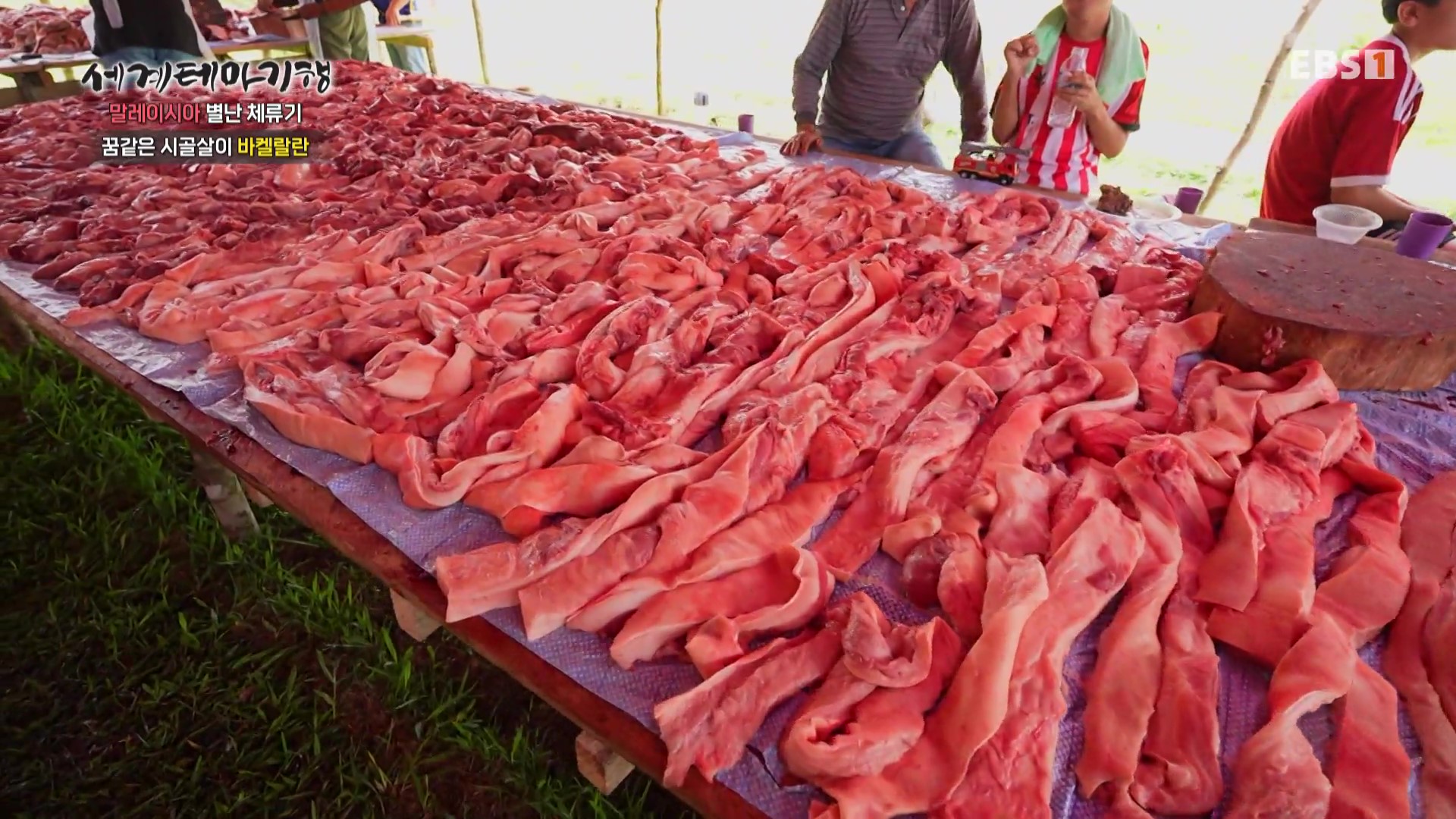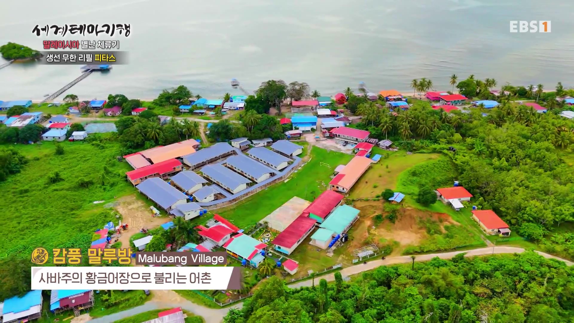 깜풍 말루방은 사바주의 황금어장으로 불리는 어촌입니다. 어선을 타고 고기잡이를 체험합니다. 바다로 나간 어부들은 바다를 걸으며 원을 그리듯 그물을 치고는 고기를 그물로 몰아 잡는 방식입니다. 식당은 없지만 요리사가 있는 집을 방문해 잡은 고기로 요리를 해 먹습니다. 마을 잔치가 열릴 때도 이집에서 요리를 합니다. 생선을 재료로 다양한 요리를 만들었군요.
