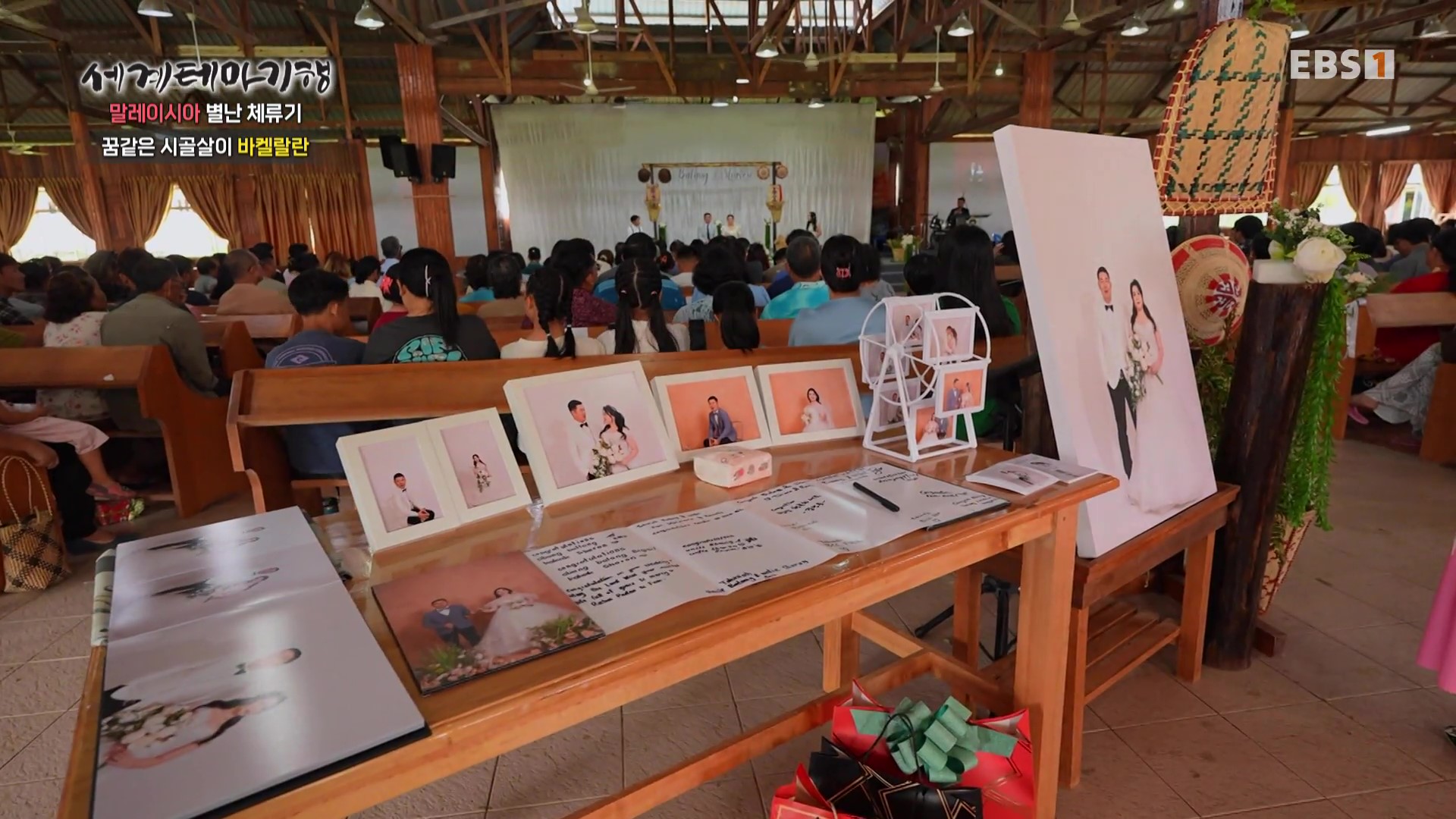 결혼식은 교회에서 열리는데 신랑신부는 현재 외지에서 생활하지만 결혼을 위해 신랑의 고향인 이곳으로 왔답니다. 결혼식 화동들도 여럿입니다. 식이 끝나자 하객들은 줄어 서서 신랑신부에게 선물을 건네며 축복합니다. 축하선물은 현금 대신 실생활에 필요한 물건입니다. 신랑도 장인에게 전통적인 선물을 합니다. 식사시간에는 며칠 동안 준비한 음식을 나눕니다.
