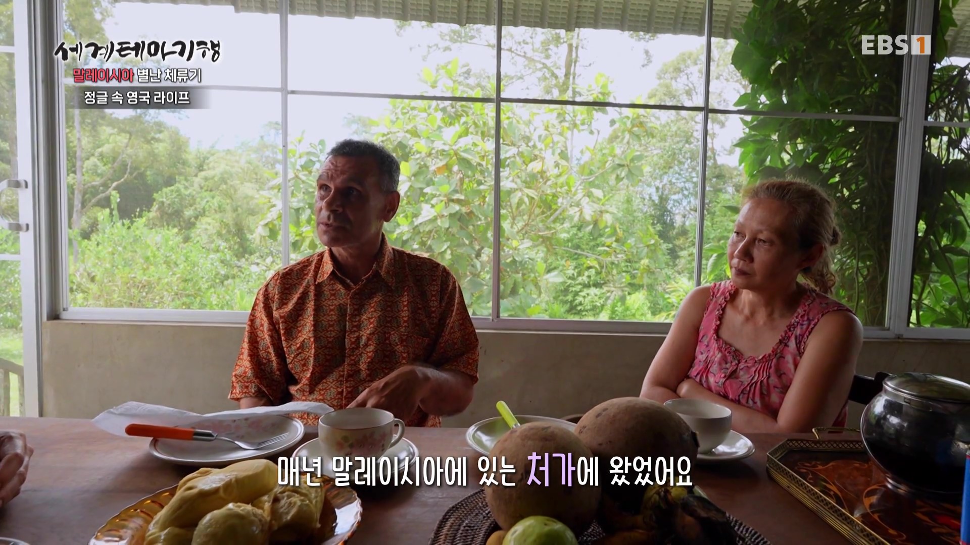 식당에서 만난 어느 영국인은 말레이시아 여성과 국제결혼을 한 후 자주 처가에 들렀는데 이곳에서 노후를 보내려고 몇 년 전 이민을 왔답니다. 그의 집으로 초대를 받아 방문했는데 집은 마치 영국의 저택 같습니다. 집안의 가구도 모두 영국에서 가져왔다는군요. 이곳에 집을 마련하면서 두리안 농장을 인수해 두리안을 자주 먹습니다. 두리안은 열매와 꽃 모두 좋은 식재료입니다.