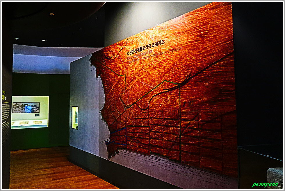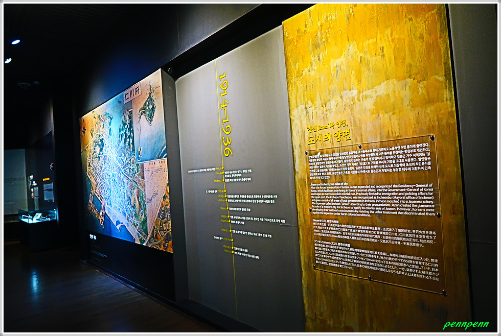 1층 상설전시관인 근대도시관으로 들어섭니다. 이곳은 인천이 개항한 1883년부터 구한말인 1906, 일제강점기인 1914년과 1936년, 그리고 해방을 맞이한 1945년까지 인천의 역사를 다루고 있습니다. 1883년 조선 정부는 인천도호부 서쪽의 작은 포구인 제물포를 개항했습니다. 이로 인해 몇 척의 어선만 드나들던 제물포 해안은 무역을 위해 입항하는 외국 기선의 정박지가 되었고, 상인과 부두노동자들이 모여들면서 개항장이 되었습니다.