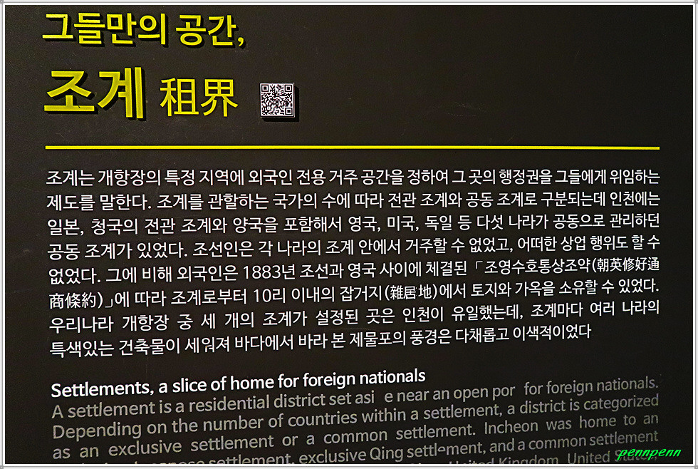 조계(租界)는 개항장의 특정지역에 외국인 전용거주공간을 정해 당해 행정권을 그들에게 위임하는 제도를 말합니다. 조계를 관할하던 국가의 수에 따라 전관조계와 공동조계로 구분되는데, 인천에는 2곳의 전관조계(일본, 청국)와 1곳의 공동조계(일본, 청국, 영국, 미국, 독일)를 두었습니다. 조선인는 조계 내에서 거주는 물론 상업행위도 금지된 만면 외국인은 조영수교통상조약(조선과 영국간 1883년 체결)에 따라 조계로부터 10리 이내에서는 토지와 가옥을 소유할 수 있었습니다.