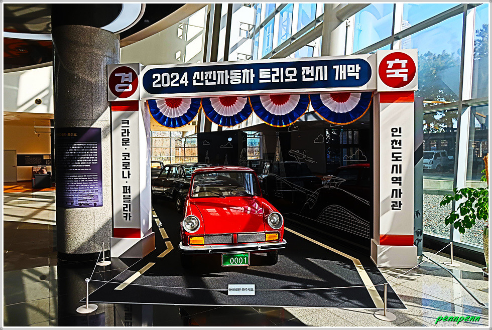 인천지하철 1호선 센트럴파크역 3번 출구로 나오면 바로 좌측에 인천도시역사관이 있습니다. 1층 로비에는 신진자동차 트리오 전시회가 열리고 있군요. 신진자동차는 연간 6,000여 대의 생산능력을 갖춘 새나라자동차를 인수해 1966년 신진자동차공업(주)로 상호를 변경해 본격적으로 자동차를 생산하기 시작했습니다.