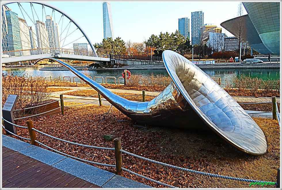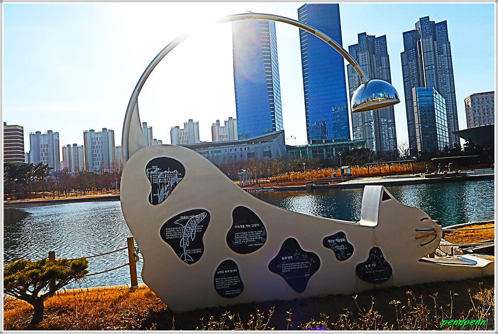 인공호수를 돌아 센트럴파크역으로 갑니다. 길목에 있는 수상택시선착장, 유럽식으로 지어진 상가 아트포레, 어린이놀이터를 지나 센트럴파크역 2번출입구 앞으로 가면 대형 첼로 조형물을 만납니다. 센트럴파크의 약 3분의 2정도 돌아본 후 귀가합니다. 매서운 강추위로 체감기온이 영하 10도여서 카메라 배터리가 방전된 것도 귀가를 서두른 이유였습니다. 앞으로 신록의 계절이 오면 이 멋진 풍광을 보러 다시 찾고 싶습니다. 참고로 이곳에는 선쎗정원, 감성정원, 초지원, 산책정원, 테라스정원이 있습니다.