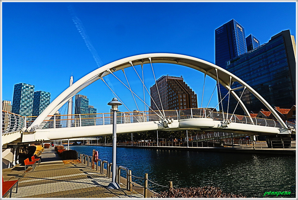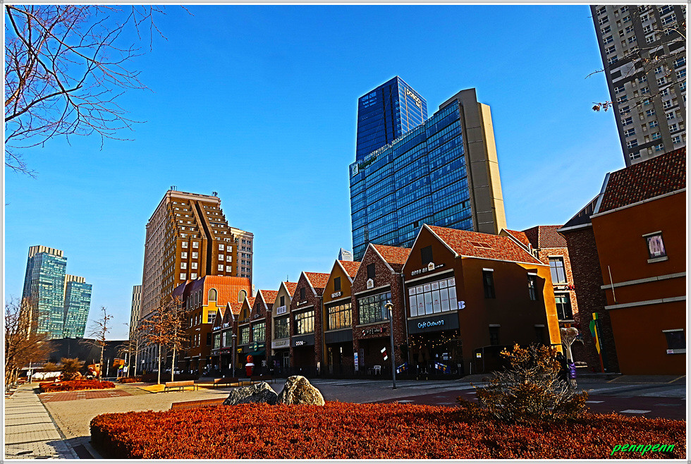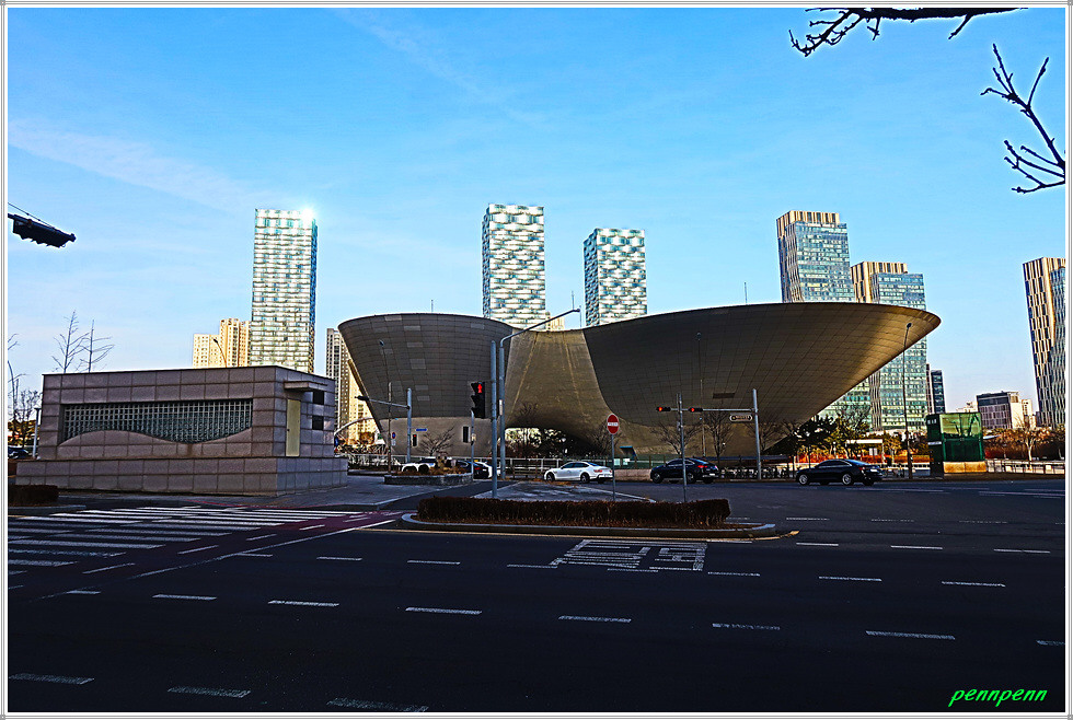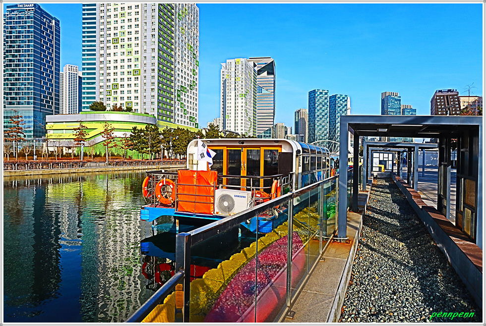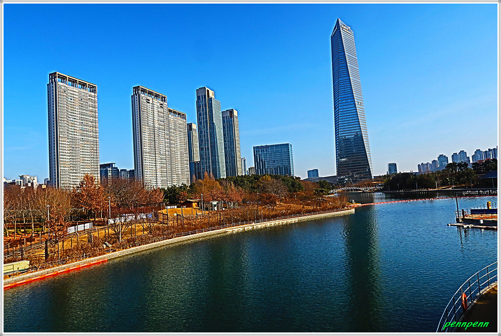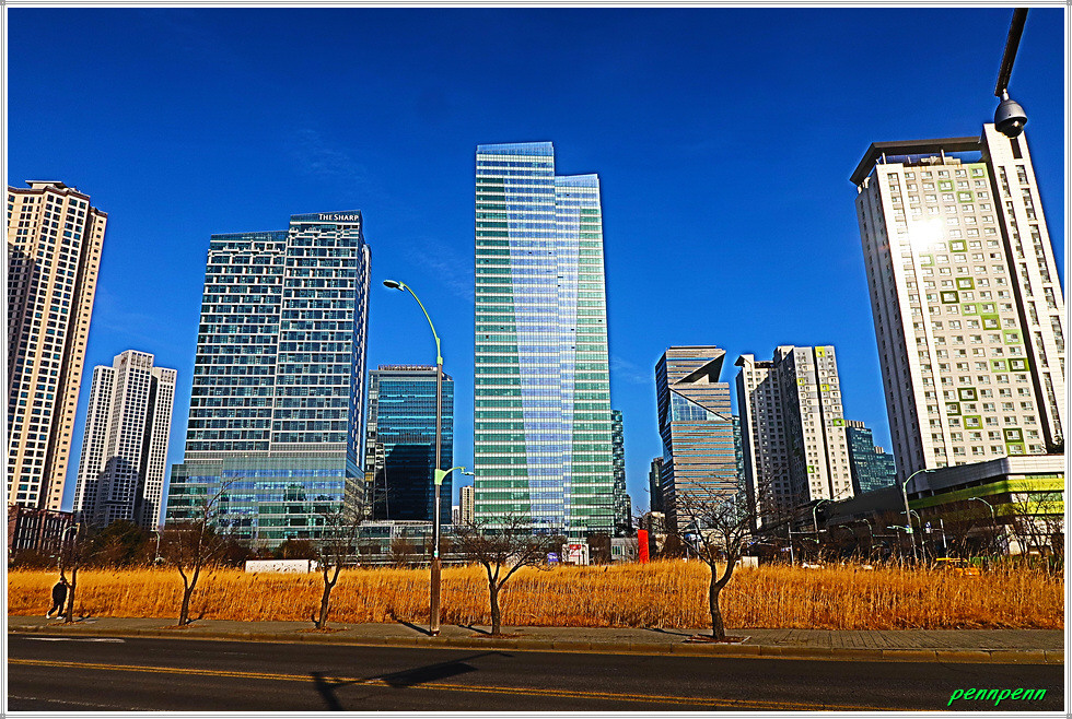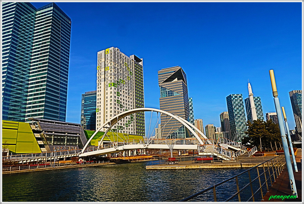 여기서 지나온 인공호수 주변의 건축물을 뒤돌아보는 풍경도 멋집니다. 송도국제도시가 조성될 때부터 이곳을 중동의 두바이라고 불렀습니다. 이곳 센트럴파크주변에 늘어선 첨단 건축물들이 춤추는 듯한 모습을 보노라면 이곳이 과연 한국이 맞는지 의아스러울 지경입니다.