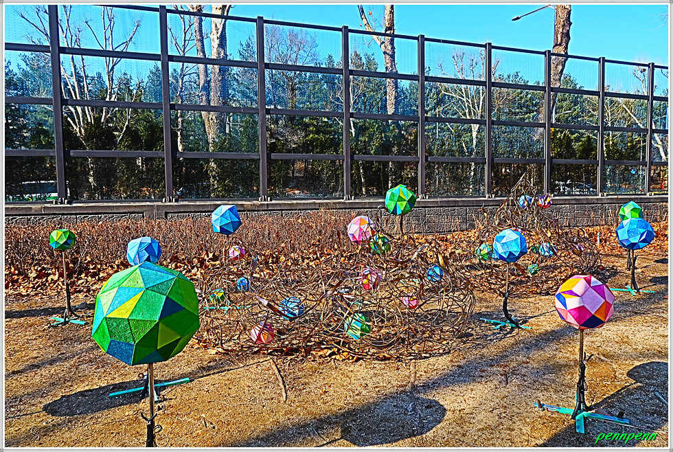 경춘선 숲길 갤러리는 화랑대역사 인근에 위치한 복합문화공간으로 주민들이 경춘선의 정취를 간직한 상징적인 장소에서 자연스럽게 예술을 접하고 향유할 수 있도록 기획된 열린 문화공간입니다. 134㎡ 규모의 전시실과 수장고, 야외무대 등을 갖추고 있어 전시, 공연, 체험 등 다양한 문화예술 활동이 가능한 문화시설입니다. 지난해 12월 중순부터 김신아 초대전이 열리고 있는데 전시된 작품은 설치미술 같습니다.