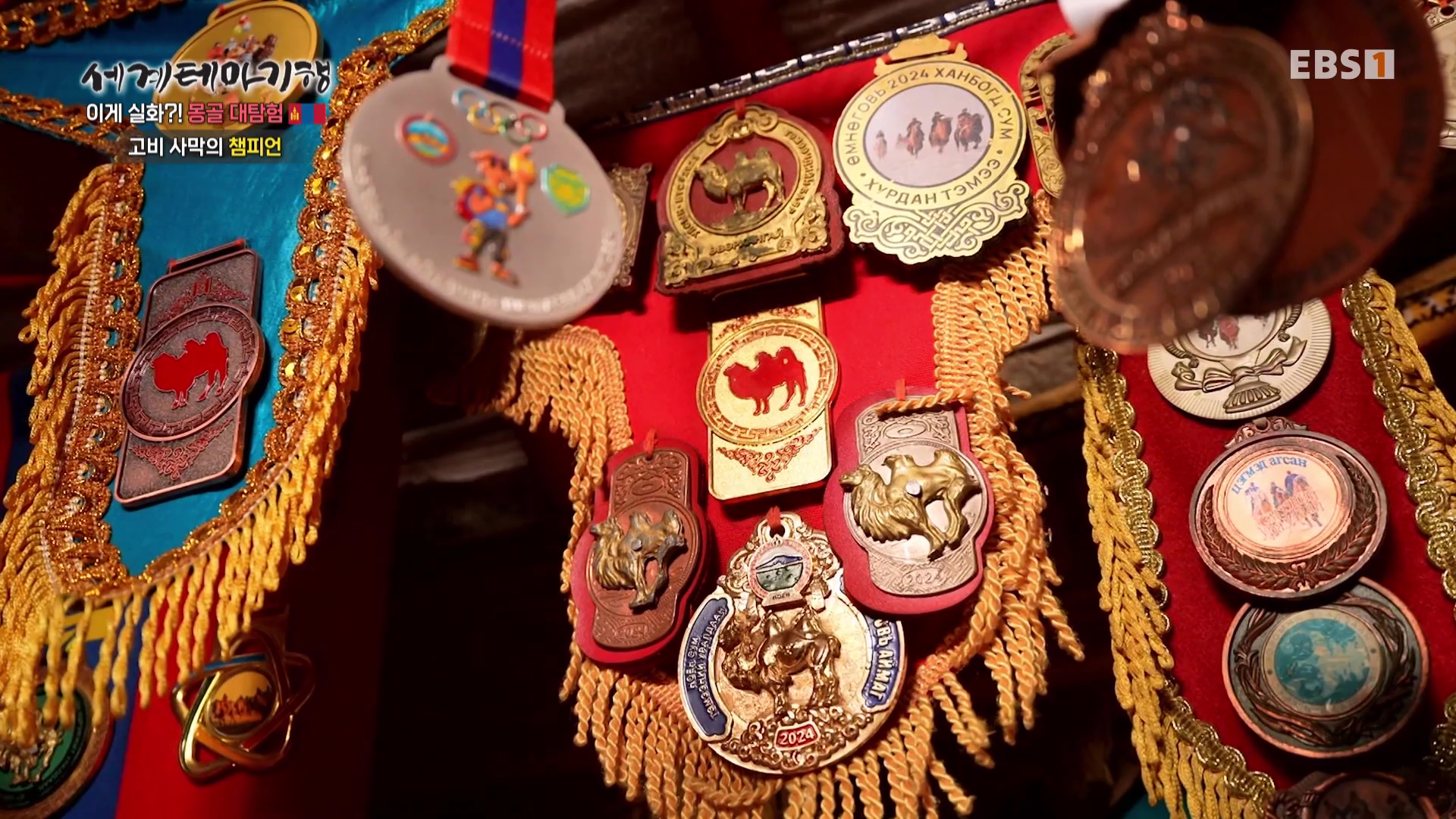 집안에는 그간 각종 경기에서 수상한 메달(약 300개)이 주렁주렁 걸려 있습니다. 게르를 옮길 때마다 정성껏 챙기는 보물입니다. 이 중 몽골 전국대회우승 메달이 가장 귀중합니다. 낙타분야의 국가명예조련사 칭호도 받았답니다. 다른 게르는 낙타고기를 말리는 곳으로 이는 비상식량입니다. 낙타고기는 푹 삶아서 먹는데 추운 겨울을 버티게 해주는 보양식입니다. 낙타경주에 참가하기 위해 이틀에 한번 낙타훈련을 시킵니다.