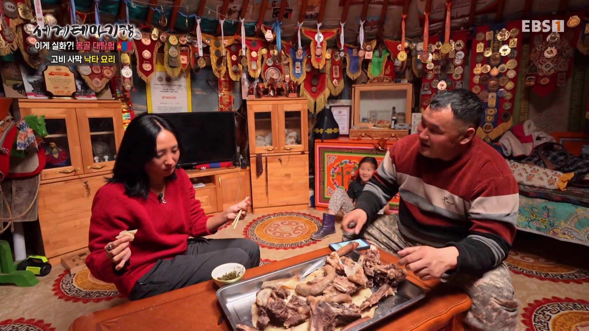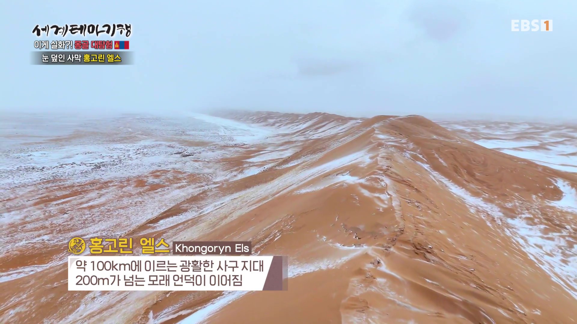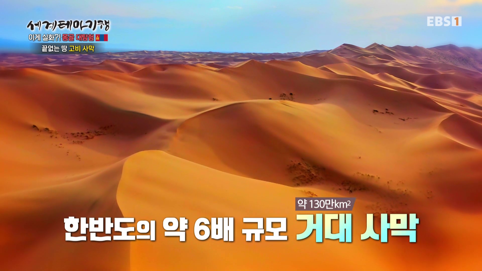 <EBS 세계테마기행>은 안방에 편안하게 앉아서 세계의 명소들을 체험할 수 있는 수준 높은 교양프로그램입니다. 각 방면에 걸쳐 다양한 지식을 가진 전문가가 출연해 실시하는 해설을 따라가노라면 실제로 해외여행을 하는 것 같은 착각에 빠지기도 합니다. 2026. 3. 2∼3. 5 기간 중 “세계테마기행, 이게 실화 몽골대탐험”편이 방영되었습니다. 몽골의 면적은 한반도의 7배, 인구는 352만 명, 수도는 울란바토르입니다. 이번 여행은 이예지 여행작가가 안내합니다.