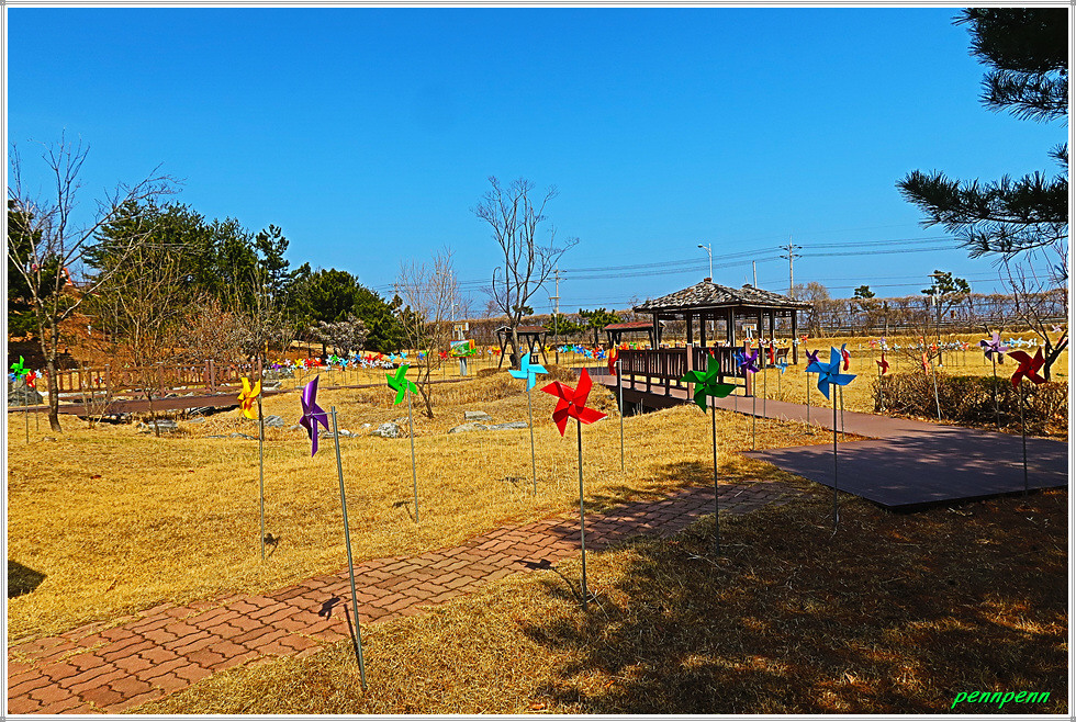 실내전시관을 관람한 후 출구로 나가면 공원 같은 부지에 다양한 조형물과 시설물이 설치되어 있습니다. DMZ 입체글씨는 사진촬영 포인트이며, 바람개비와 정자 등이 공원의 분위기를 물씬 풍깁니다. 이곳 철책은 2010년 동부전선에서 철거된 비무장지대 철책을 그대로 옮겨온 것입니다.