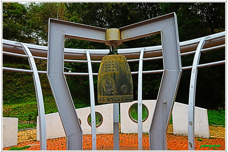 평화의 댐 하부 평화나래교 북단에는 세계평화의 종공원이 있습니다. 하부 대형 주차장에는 세계평화종공원(Peace Bell Park)을 알리는 조형물이 세워져 있는데 일명 벨파크로 불리는 세계평화의 종공원에는 평화를 소망하는 세계 각국 유명 인사들의 핸드프린팅과 함께 세계에서 보내준 각종 종들과 전쟁지역 탄피 등 여러 가지 볼거리와 휴게공간이 마련되어 있습니다.