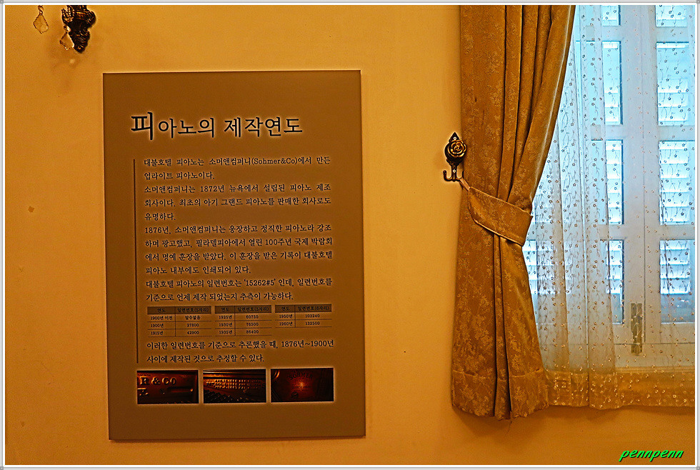 2층전시실에서는 재현된 대불호텔의 객실을 볼 수 있습니다. 대불호텔과 함께 그 시절 인천의 다른 호텔과 여관 등 숙박업소의 운영방식, 이용요금, 제공된 서비스와 관련된 내용도 전시되어 있습니다. 고풍스러운 가구와 다기, 커피메이커, 테이블웨어 등 전시된 근대 물품이 재현되어 있습니다. 대불호텔은 국내 최초로 커피를 제공했던 장소였습니다.