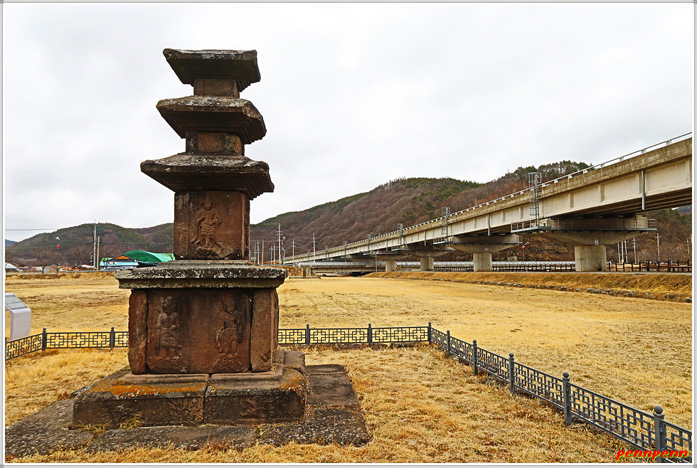 동쪽 지주 일석(一石)만 남아 있는데 삼층석탑과 일정한 거리를
