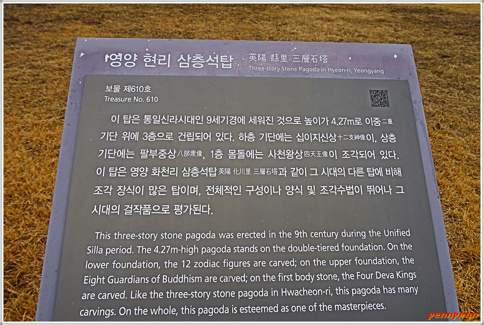 “영양 현리 삼층석탑”은 통일신라시대의 석탑(보물 제610호)입니다.