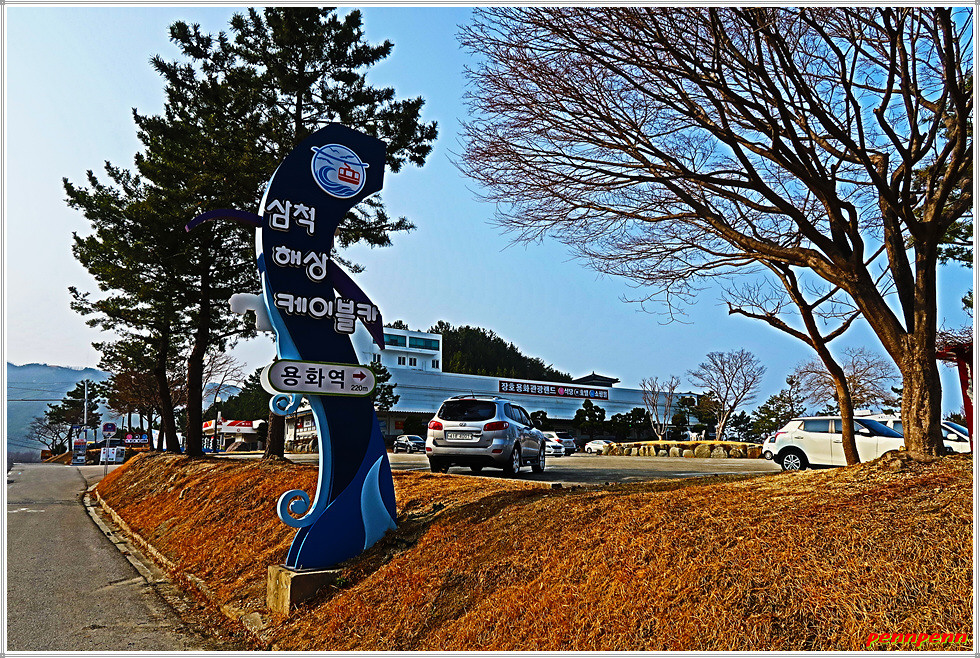 장호항을 뒤로하고 도로를 따라 가노라면 장화용화관광랜드가 보이는데, 이곳에 삼척해상케이블카 용화역이 있습니다. 이곳을 우측 옆구리에 끼고 돌아가면 목적지인 삼척해상레일바이크 용화정거장입니다.