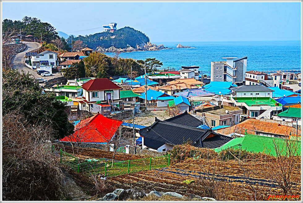 해신당공원을 뒤로하면 갈남항입니다. 갈남마을은 아담한 어촌마을이지만 명태잡이와 미역채취로 한때는 인근에서 부유한 마을로 손꼽혔으며, 1970년대 동해안 해산물 양식 개척지이기도 한 곳입니다. 바다를 끼고 있는 마을의 모습과 북쪽으로 보이는 삼척해상케이블카 장호역의 풍경이 정말 아름답습니다.
