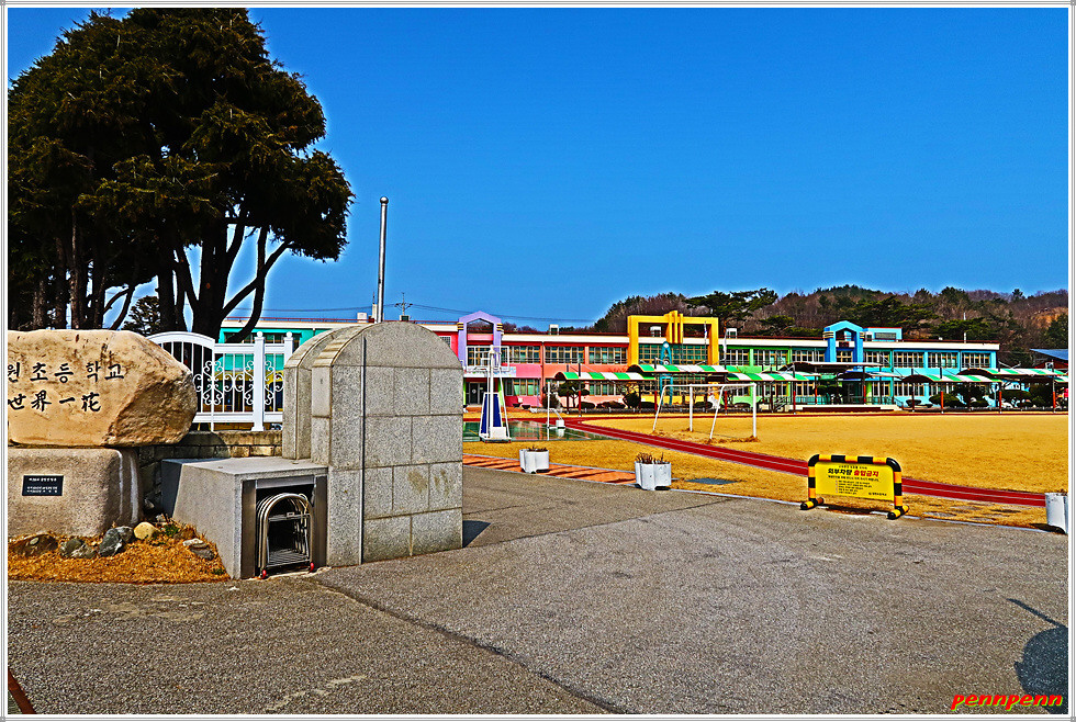 공원을 한바퀴 돌아보고는 임원항교로 되돌아와 우측으로 갑니다. 원덕읍임원출장소와 임원초등학교를 지나 임원1교를 건넙니다. 여기서 원래 해파랑길은 좌측의 임원천을 따라 검봉산자연휴양림 방면으로 이어집니다. 그렇지만 이쪽은 내륙의 도로를 계속 걸어야하는 매우 단조로운 길이기에 우리는 이쪽 길 대신 해변의 도로를 걷기로 결심하고는 직진합니다.